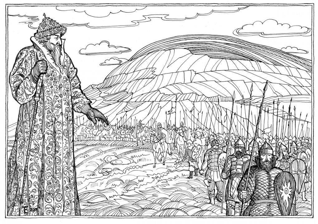 «Песчаный холм возносится один в степи пустой. Орда кипела здесь. Теперь тут все молчит. Момаон в нём лежит. Когда семи державам Законы он давал... Рутению себе хотел он покорить войной. Теперь безмолвно здесь. Стоит курган степной. А хан забыт...»