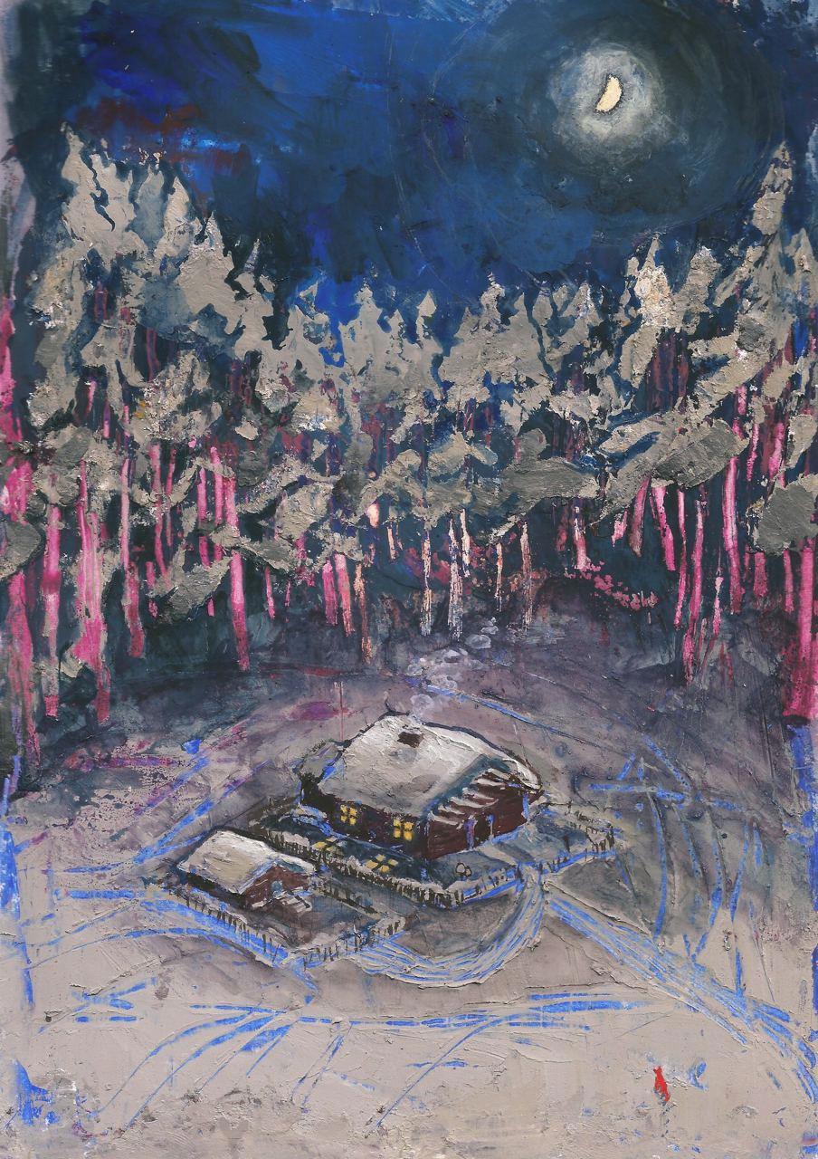 В ту ночь было морозно и светло, огромная луна рассыпала по снегу свой серебряный свет, она заглядывала в окна деревенских домов, освещала дворы и широкие просёлочные дороги, да ещё верхушки высоких сосен, что росли в лесу, неподалёку от деревни.