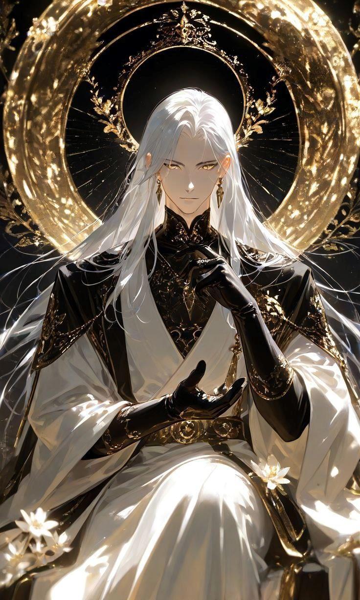 Но, будучи Изначальной Сущностью, чей истинный лик сокрыт даже от Богов и чудовищ, Завет иногда облекается в человеческий образ: мужчину с волосами, белыми, как первый свет мироздания, и глазами, горящими золотом вечности. Это лишь маска, которую Он носит, ибо Его суть — вне любых рамок.