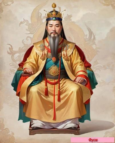 [4]. Фуси (кит. упр. 伏羲, пиньинь fúxī или 宓犧, 虙羲), иначе Паоси (кит. трад. 庖犧, упр. 庖牺, пиньинь páoxī), Тайхао (кит. 太昊) — божество, легендарный первый император Китая (Поднебесной), повелитель Востока.