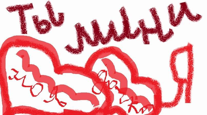 Картина представляет собой графити, написанное бордовым напылением. На нем написано: "Ты мини я" и в сердцах написано: "Моя дочка". Два сердца нарисованы только обводками.