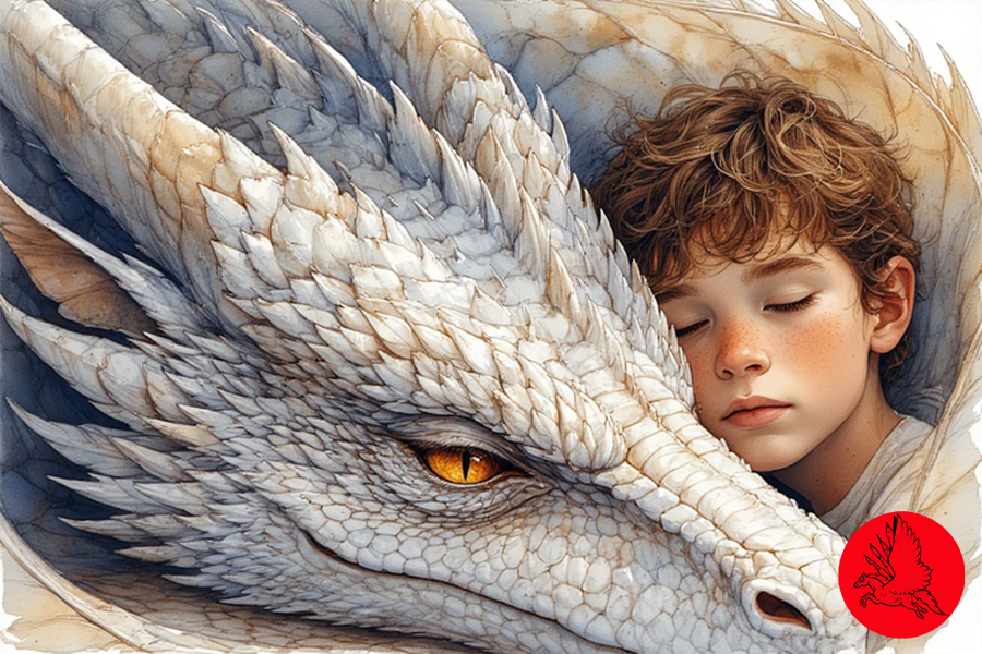 Сильное тело дракона обернулась шесть раз вокруг малыша.
