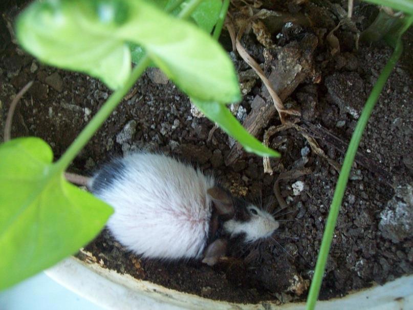 Мышки жили в специально оборудованной клетке, но со временем стало ясно, что им нравится копаться в земле большого цветка, стоящего на полу.