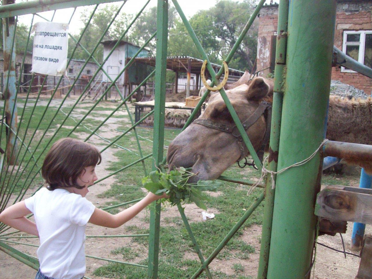 Фотография передаёт её эмоции: от нее веет экстримом - Маринетт Мортем смотрит на верблюда с любопытством и страхом, но при этом всё равно решительно протягивает ему угощение. Верблюд, в свою очередь, спокоен и охотно принимает предложенный корм.
