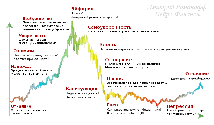 Работа в финансах это взаимодействие людей самых разных социальных слоёв, уровней образования и возможностей. Сотрудник получает премию в виде акций компании, где он работает. Инвестор покупает акции молодой перспективной компании, выходящей на биржу. Для сохранения своих накоплений, пенсионер инвестирует в золото или серебро, покупая ОМС или монету в банке. Фондовый рынок это бизнес банков, управляемый через периоды аккумуляции и дистрибуции активов, основанный на психологии поведения всех этих очень разных людей.