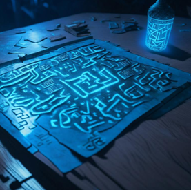 Выбрав место посвободнее, я отодвинул весь хлам в сторону и достал из пространственного хранилища предмет, занимающий все мои мысли в последние дни. Небольшая металлическая пластина со рваными узорами синего цвета. Артефакт Первых.