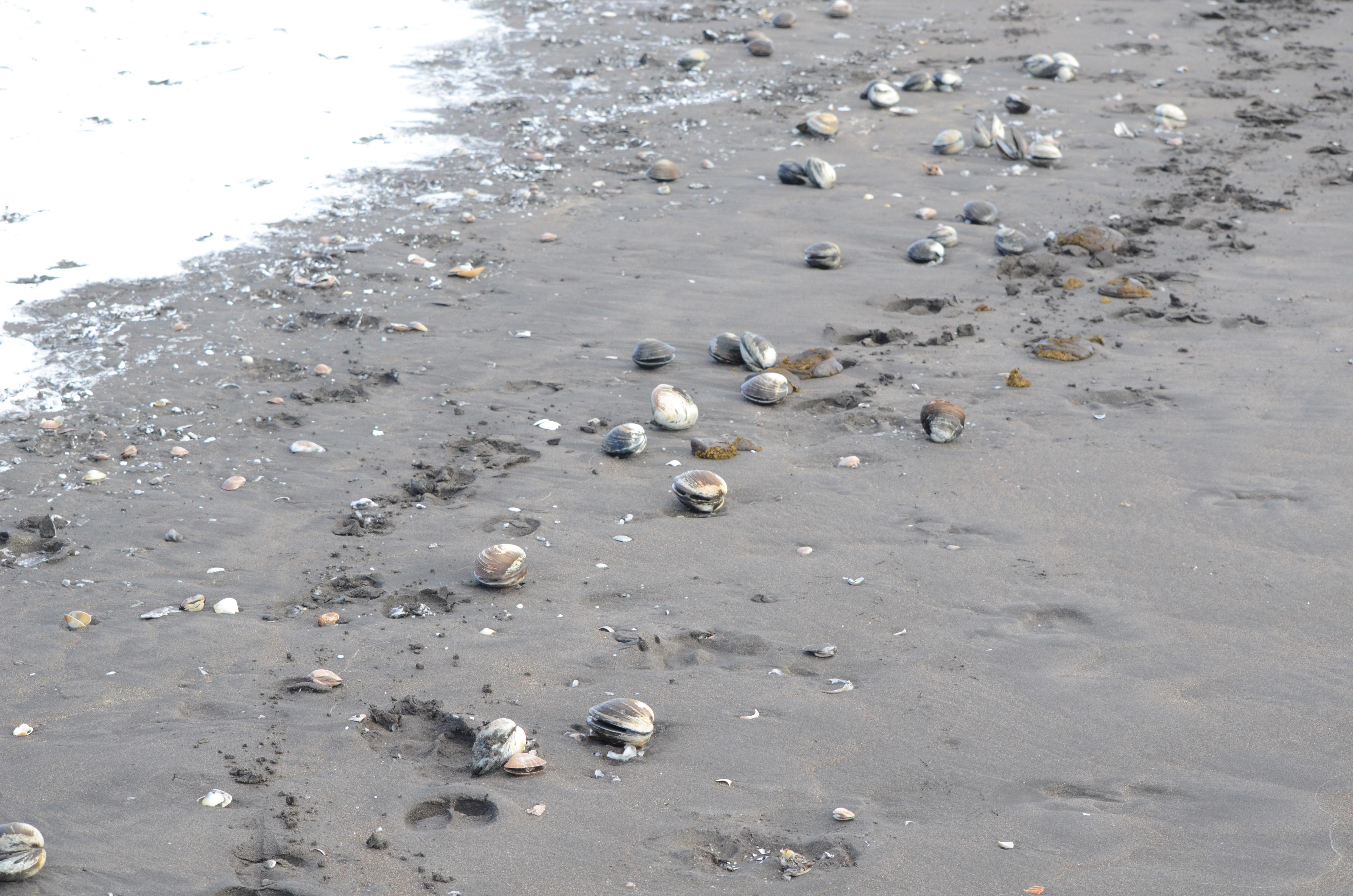 Тут в основном спизула - она большая, иногда до хорошего кулака размерами. Следы на песке - наших водоплавающих коров