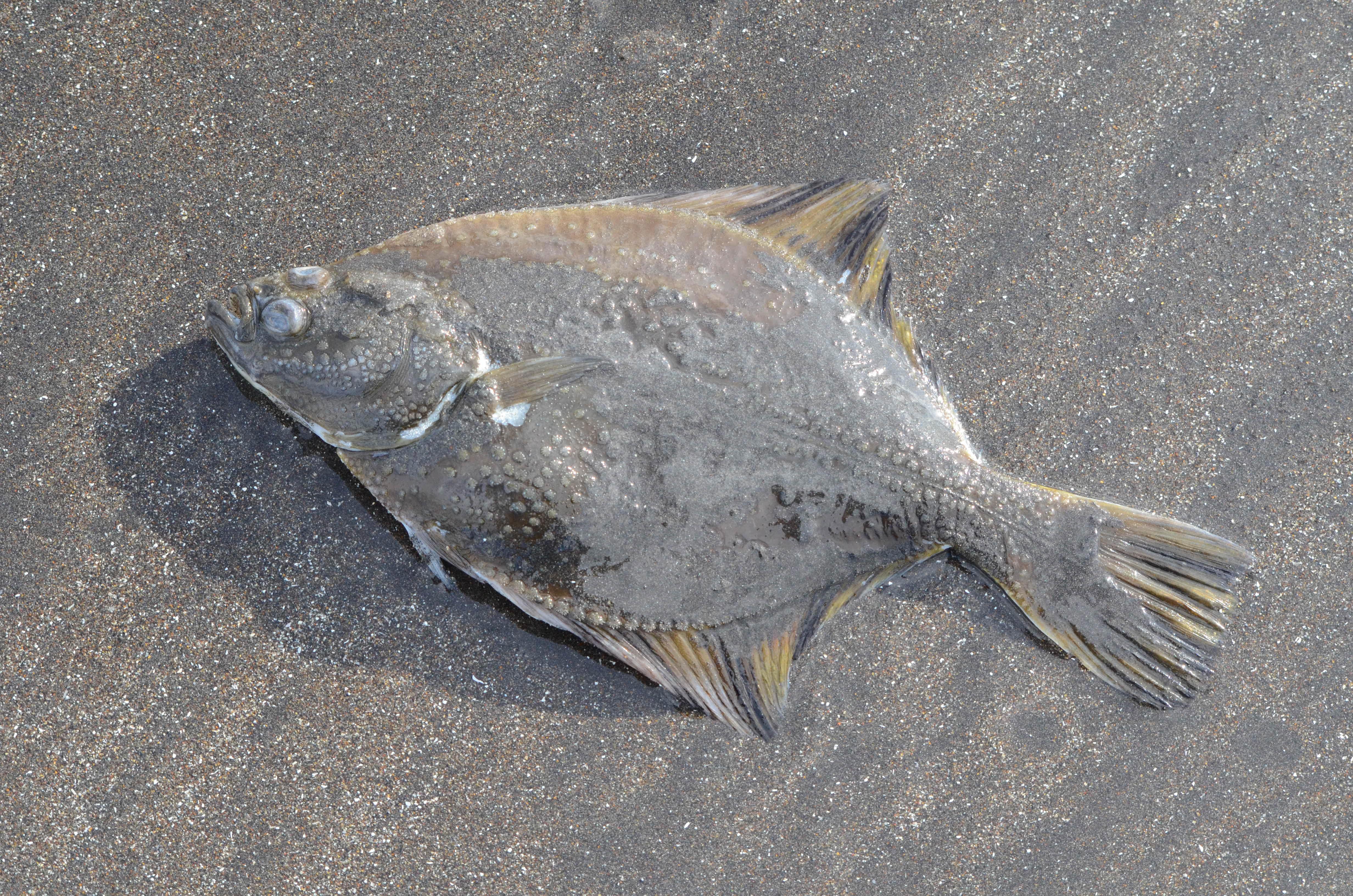 На обратной дороге нашли на берегу камбалу. Пришлось нести к ручью, чтобы хоть немного смыть песок. Тут он мелкий, черный, с легким магнетизмом... Пора уже делать галерею фотографий с рыбой в руках, словно у настоящего рыбака