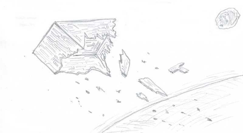 Когда да цели оставалось всего пару километров, неопознанный куб вытянулся в форму ромбоида. Его острые углы засверкали ярким белым светом, вспыхнувшим ярче солнца. Дрожащие дуговые разряды внезапно прочертили ломанные извивающиеся «линии» между вершиной угла и первой боеголовкой тяжелой орбитальной ракеты. Она тут же растворилась в облаке взрыва. Разряд необыкновенной по силе мощности оттолкнулся от исчезающей в облаке осколков первой ракеты и метнулся ко второй, поразив и ее. С противоположного угла ромбоэдра так же метнулся дуговой разряд, подобный молнии, который испепелил обе ракеты, летевшие к нему на встречу с поверхности Марса. 3-я гафниевая боеголовка удачно пережила уничтожение и подловила объект в момент наименьшей скорости, во время почти полной остановки перед тем, как вырваться из цепких лап гравитационного притяжения Марса. Еще одна на этот раз большая и очень яркая вспышка осветила поверхность, словно само Солнце, лизнуло ее своими яркими лучами и исчезло. На месте контакта осталась лишь часть неизвестного объекта, более чем на половину разрушенного детонацией боеприпаса. Его рваные края засверкали кроваво-красным зловещим светом от температурного воздействия на фоне рыжей планеты, пока со временем совсем не потухли. Многочисленные большие и маленькие фрагменты таинственного ромбоэдра в больших количествах устремились обратно к поверхности. На плато где-то во впадине пролился металлический дождь, взрыхляя грунт и поднимая в воздух куски рыжеватого льда, земли и грязного снега. На этот раз «авантюристам», задумавшим сбить неопознанное таинственное тело, сопутствовал успех. Однако же собрать плоды своих трудов было той еще непростой задачей.