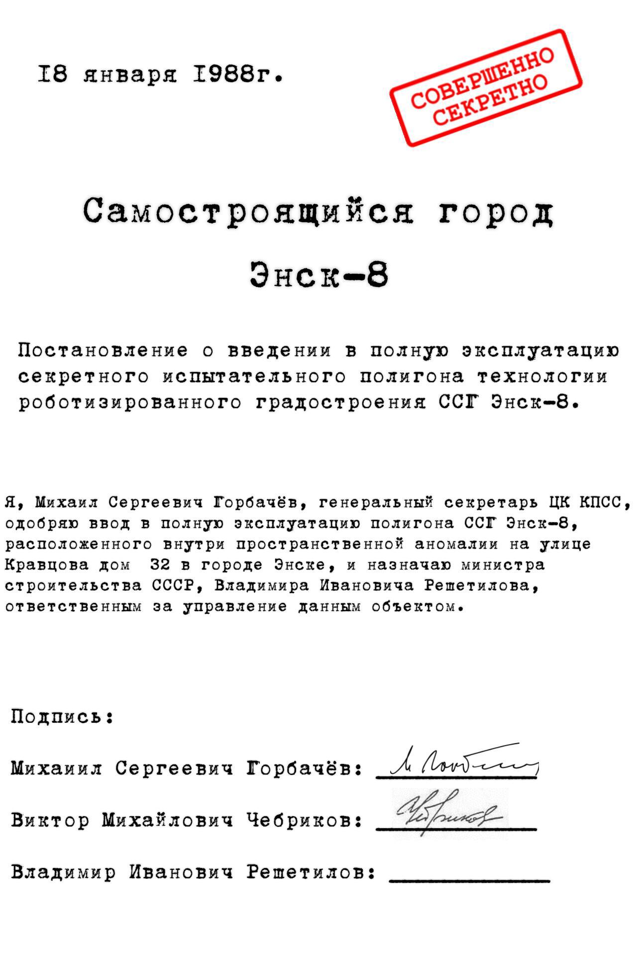 За всё время своего нахождения я не нашёл ни одного признака наличия здесь ветра. Однако сейчас я почувствовал довольно сильный боковой ветер. Его порыв принёс мне потрёпанный бумажный лист со штампом и подписями. Я взял этот напечатанный на давно канувшей в лету печатной машинке документ и принялся внимательно его изучать.