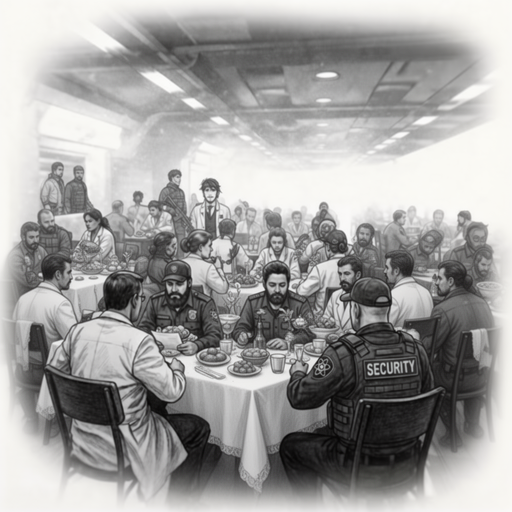 Я сидел за столиком в углу, механически ковыряя вилкой в серой массе на тарелке, и наблюдал. За соседними столами вперемешку сидели люди в белоснежных лабораторных халатах и крепкие ребята в тактической форме с нашивками "SECURITY". Они смеялись над плоскими шутками, планировали выходные, которых у нас не было уже полгода, и всерьез спорили о финалах дурацких сериалов. Они жили. В их реальности существовало «потом».