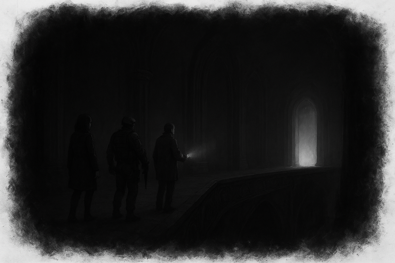 Мы были тремя незнакомцами, брошенными в пасть вечности. Оперативник, который верил только в свое оружие; ученый, который верил в цифры; и я — тот, кто слишком сильно хотел узнать, что находится по ту сторону, и теперь цеплялся за белый халат, как за последнюю соломинку.
