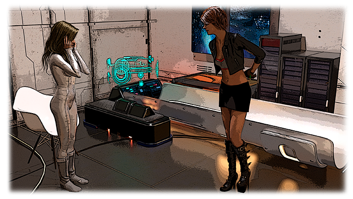 Её человеческий карий глаз немного диссонировал с электронным светящимся голубым цветом имплантом вместо второго глаза. Шатенка что-то делала на голографическом экране капсулы у головы девушки, нажала что-то ещё пару раз, и тут со всех сторон раздался электронный голос: