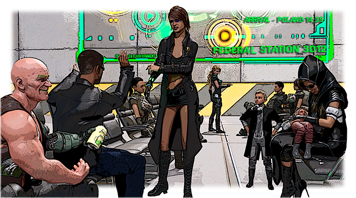 Люди были настолько разные и местами опасные, что Оксана до самых очков кутала себя в бесформенном плаще с капюшоном и воротом. Прямо напротив неё в одной жилетке сидел лысый мужчина с зелёными бровями и губами и, размахивая своей дешёвой кибернетической рукой с какой-то синтетической выпивкой в банке, с кем-то эмоционально общался по нейросвязи на сербском языке.