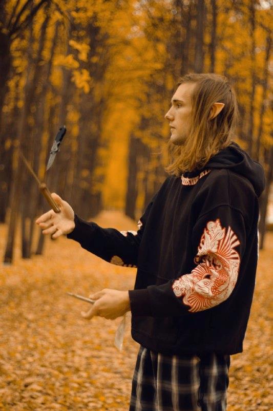 Детерминат регулярно тренируется, исполняет красивые трюки и комбинации с открытием-закрытием ножа.