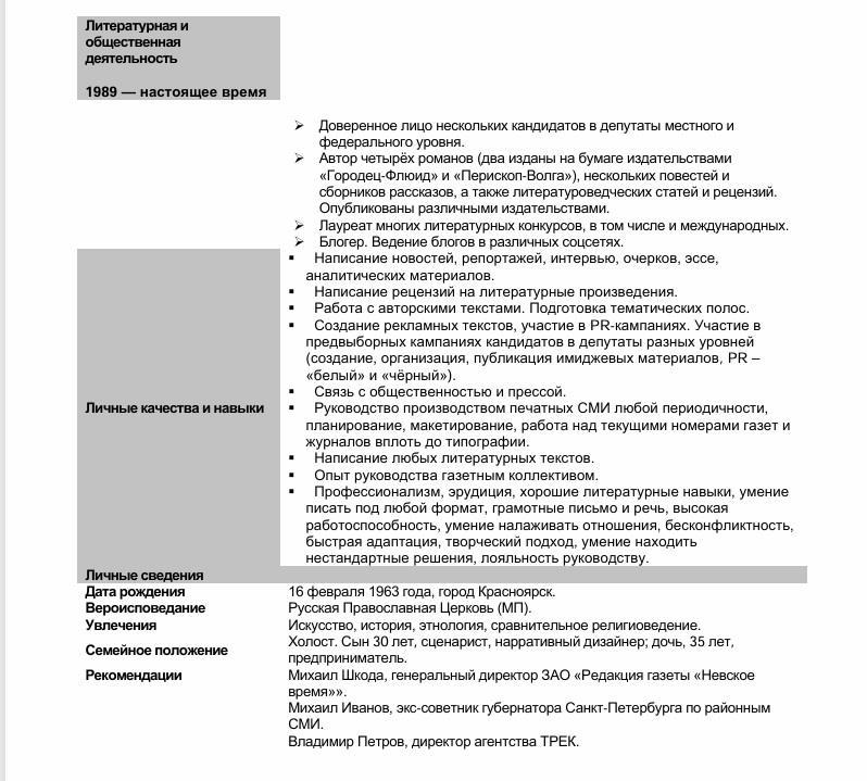 Собственно, тут два резюме: «литературное» и «общее»:)