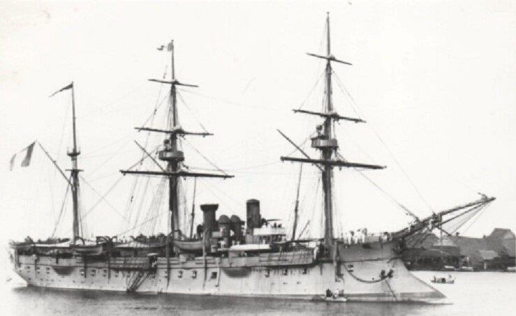 «Комодом» Шассёр, как и все прочие матросы эскадры, непочтительно именовал «Триомфан». Бывший студент привстал и вытянул шею, разглядывая броненосный крейсер. Его низкий, массивный корпус, действительно напоминающий обводами этот предмет меблировки, маячил неподалёку от иностранных судов, выстроившихся в той части рейда, которая считалась нейтральной - британских «Виджиланта», «Чемпиона» и «Сапфира», и американского корвета «Энтерпрайз».