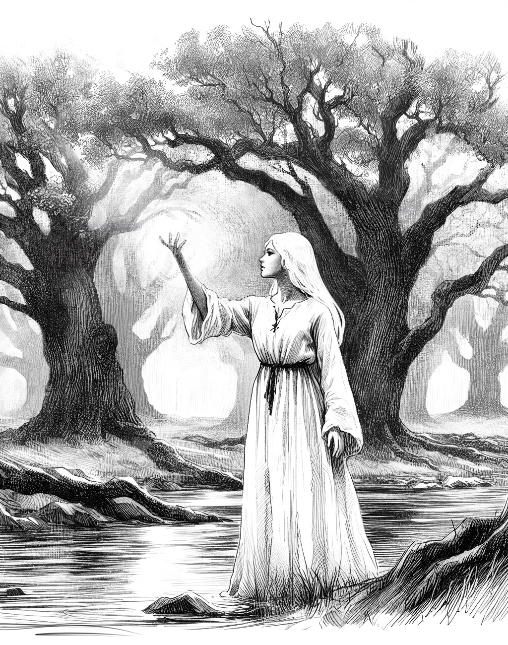 – А потом, дорогой мой друг, на этих землях поселился Тевтонский орден, и река стала мельчать. Реже появлялась ведьма и реже отвечала людям. Через годы река совсем пересохла и заросла бурьяном. Никто с тех пор не видел девушку в белом. Но даже сегодня люди слышат отголоски её чар, как видят они и русло, в котором теперь лишь трава да опавшие листья.