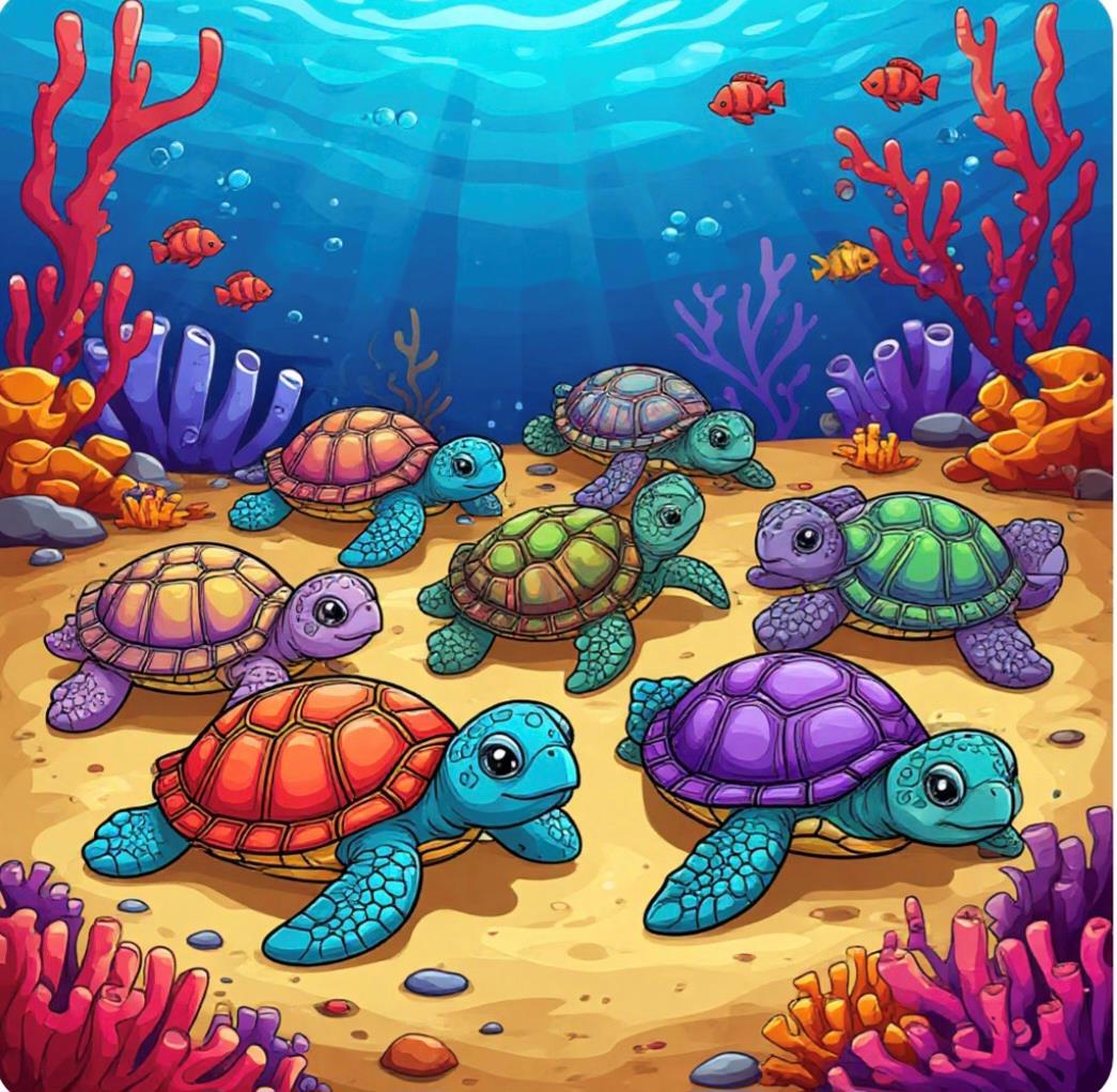 — Спасибо вам, друзья, что вы освободили нас! Вчера ночью был небольшой шторм, мы непослушали маму и уплыли играть на волнах. Опустившись на дно, мы хотели собрать блестящие ракушки для маминого ожерелья и вдруг оказались в ловушке. Нам очень-очень нужно плыть домой, наша мама сильно переживает за нас, — перебивая друг друга от волнения, тараторили черепашки тонюсенькими голосами, собираясь уплывать. Черепашки собрались в путь. Вдруг одна из них вернулась, доставая маленький свёрток из своего панциря.