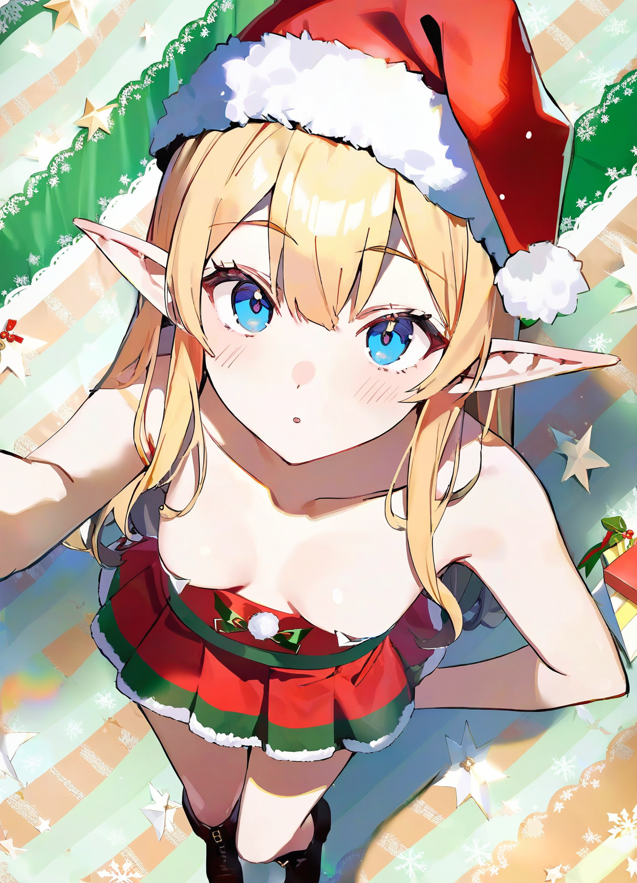 Обернувшись, я заметил очень миленькую помощницу Санты. Именно о такой я мечтал все эти годы! Светлые волосы, острые длинные ушки, красный колпачок на голове. Небольшая грудь видна в разрезе кофточки, не смотря на холод и пронизывающий ветер. Они всегда так одевались, только я пока так и не понял почему.