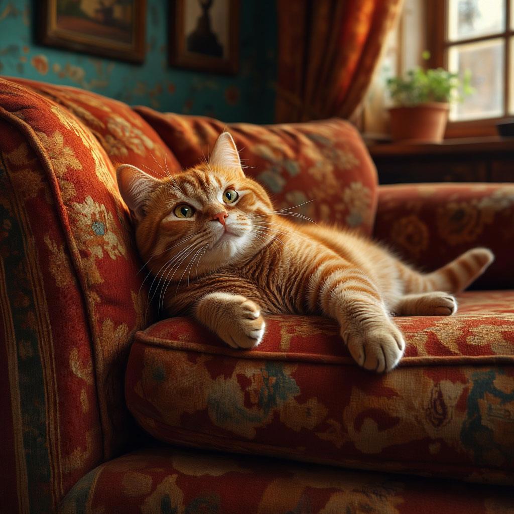 Рыжий кот, тот самый, что скинул банку, закончил трапезу и устроился на диване, наблюдая за мной свысока, как хозяин, оценивающий нового прислужника. Его взгляд был полон немого вопроса: «Ну, и что ты теперь будешь делать?»
