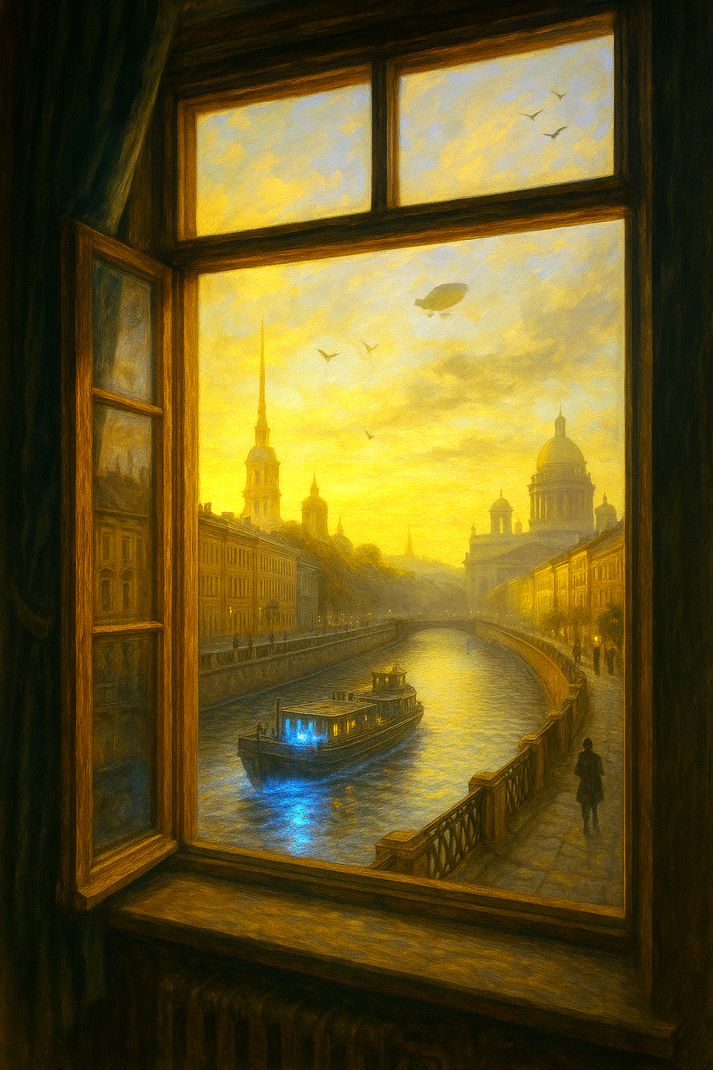 Ленинград встречал раннее утро золотистым сентябрьским светом, который лился через высокие окна квартиры на Фонтанке. Иван Кузнецов стоял у окна с чашкой кофе в руках, наблюдая, как северная столица просыпается. За окном виднелись шпили Петропавловской крепости, а дальше, за Невой, возвышались знакомые купола и башни исторического центра.