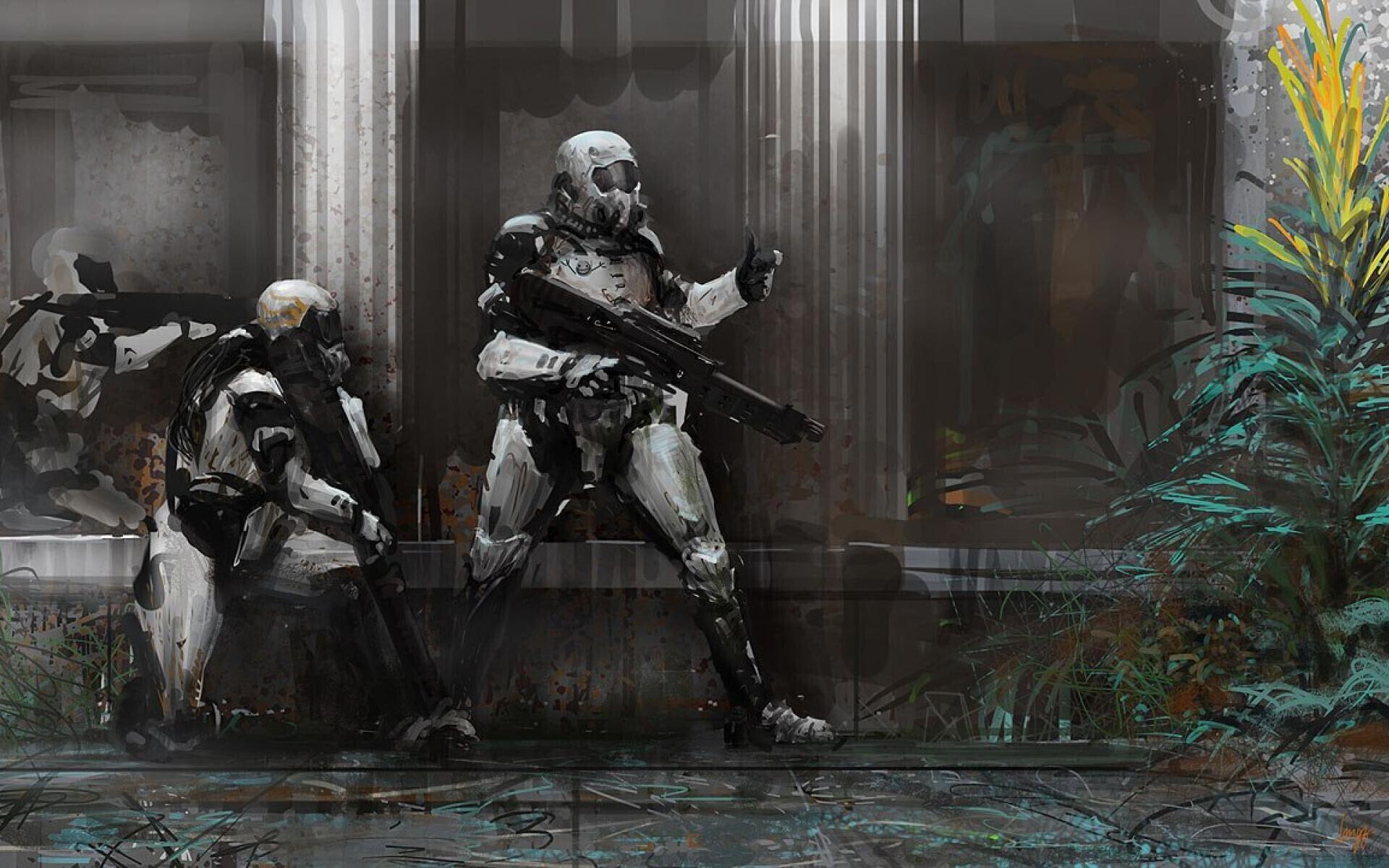 Будто по команде стволы чёрных пулемётов Каннибалов уставились на него. Костька только зажмурил глаза стараясь не трястись всем телом как трус, а ещё он подумал о Ленке. Вот тут предательская слеза побежала по грязной щеке... и в этот самый момент рядом загрохотала штурмовая винтовка. Оглушающе громко, так что даже уши заложило. О-о-осторожно приоткрыв один глаз, мальчишка увидел напротив себя человека в боевой броне тёмно-синего цвета. Два робота-солдата валялись на земле, а третий искря и курясь дымком пытался дотянуться повреждённой рукой до оружия на земле. Пластиковые пальцы скребли грунт, но на большее были не способны. Незнакомец закрывший собой мальчишку сделал несколько шагов вперёд и одиночным выстрелом разнёс голову Каннибала тяжёлой пулей. Только осколки во все стороны брызнули.