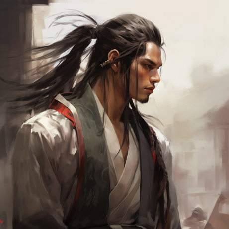 Стоящего напротив меня парня отличают тонкие черты лица с претензией на аристократизм, а также нос с горбинкой, доставшийся ему от матери. Вся его физиономия сейчас так и выражает презрение к окружающим и в особенности ко мне. Длинные чёрные волосы он зачёсывает назад и связывает в хвост атласной лентой. Естественно, когда не нужно работать в поле или лесу, можно и косу до пола отрастить. Сейчас, как и всегда, он одет в дорогие шёлковые одеяния с широкими рукавами. Их украшает искусная вышивка, подчёркивающая его высокое положение.