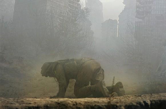 Александр достиг первого номера боевого построения, вжался в стену рядом с ним и бросил взгляд туда, куда целился боец. Его пробила дрожь: на открытом пространстве всего в нескольких метрах от полуосыпавшейся арки, под которой затаилась штурмовая группа, в маленьком сквере между серыми небоскрёбами он увидел бойца с простреленными руками и ногами, прижимающегося спиной к обрушившейся чёрногранитной стеле. Он судорожно дышал, захлёбываясь воздухом; лицо его было таким белым, что даже просвечивало через измазанный кровью проекционный монитор шлема; кровь из ран заливала белый мрамор постамента стелы и липкими тягучими каплями капала на ступеньки, ведущие к ней.