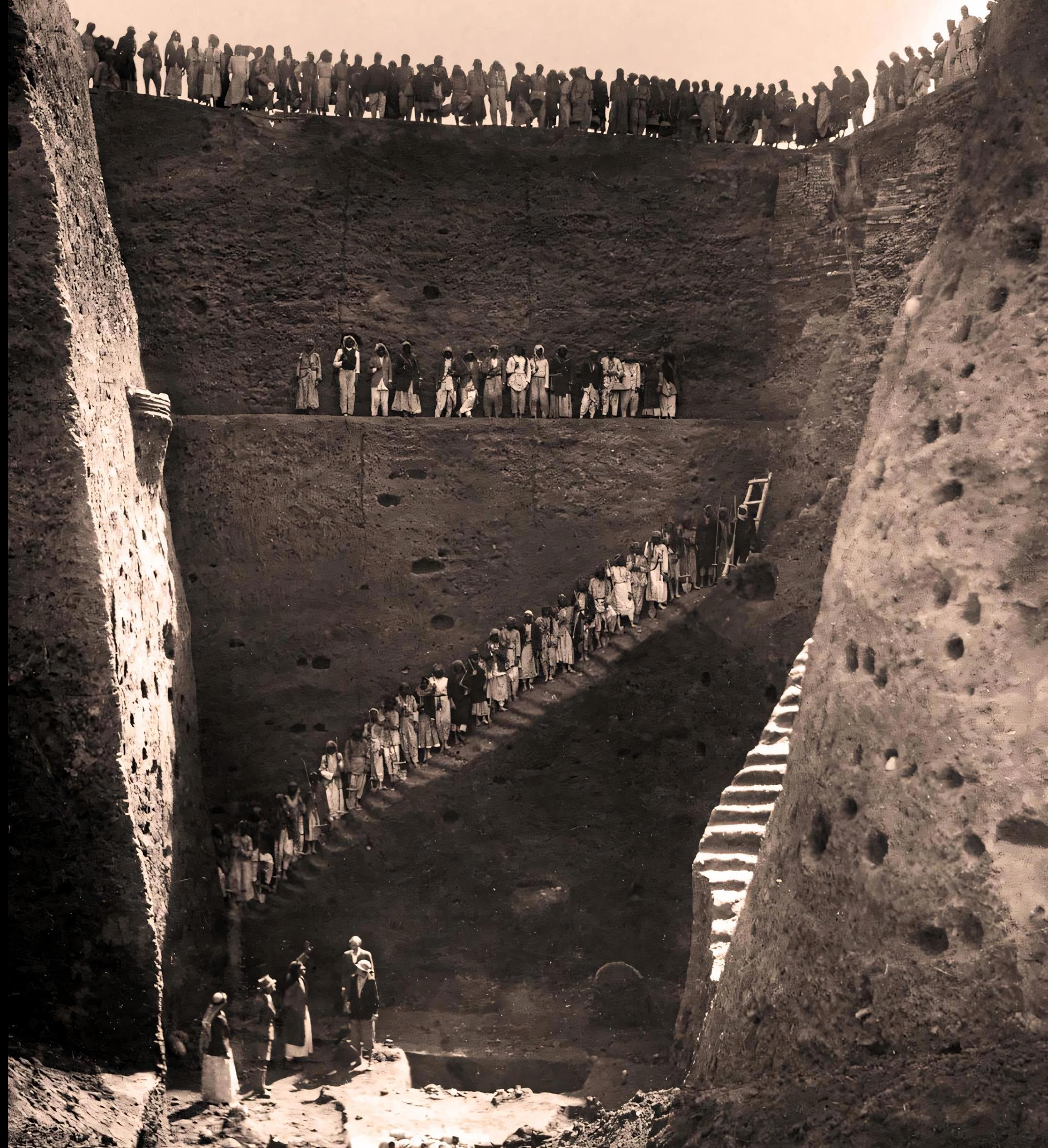 Вулли и его команда (вверху) позируют в одной из последних гробниц Ура, раскопанных в течение сезона 1933/34 годов. Всего за два месяца рабочие удалили землю на площади около 13000 кв. метров и углубились почти на 18 метров.