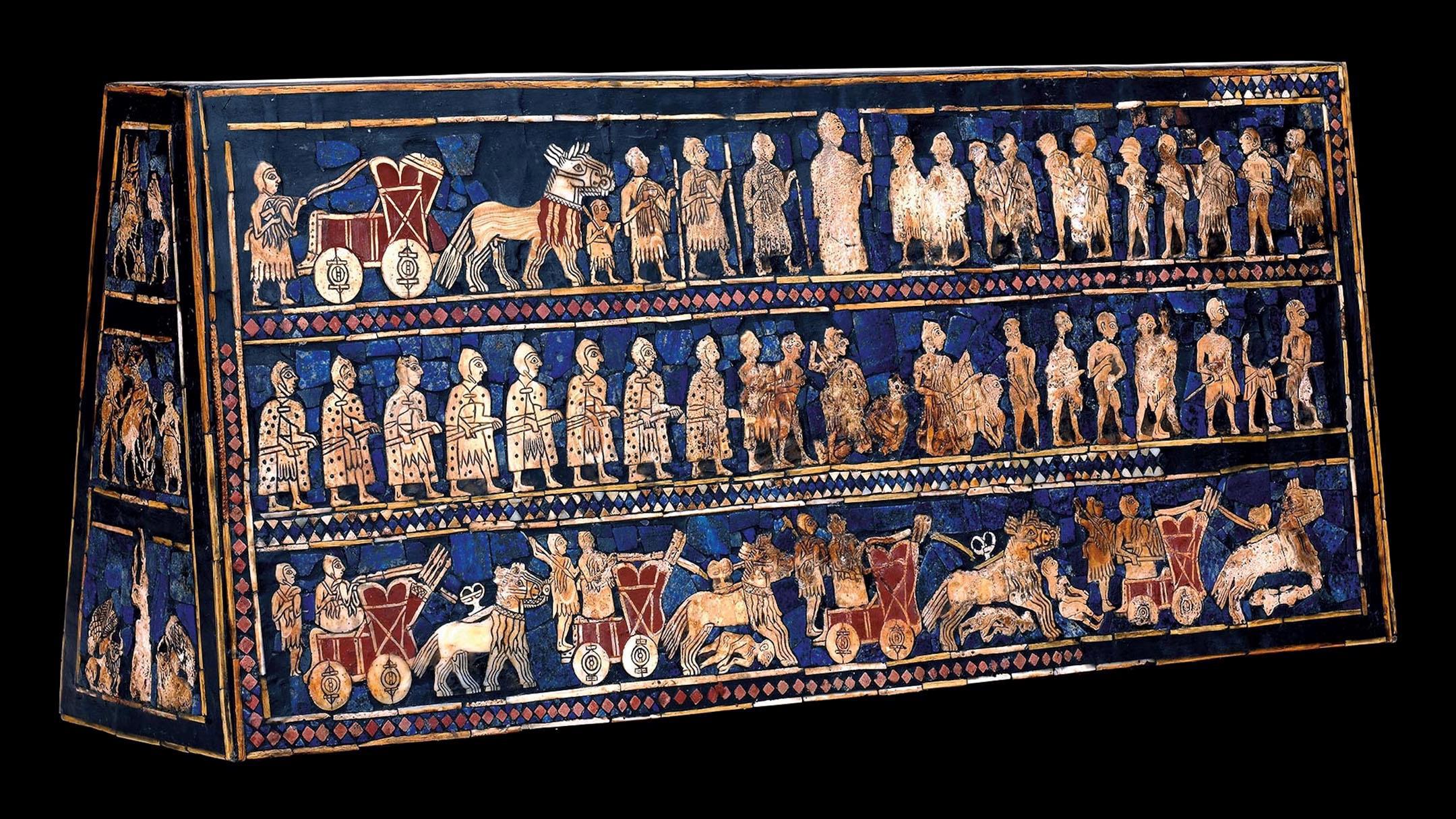 «Штандарт» из Ура, панель войны, ящик неизвестного назначения, фрагмент, ок. 2550 г. до н. э., Шумер, Ур (Урим), Царские гробницы, PG779 Ур-Пабилсага, Британский музей, Лондон.