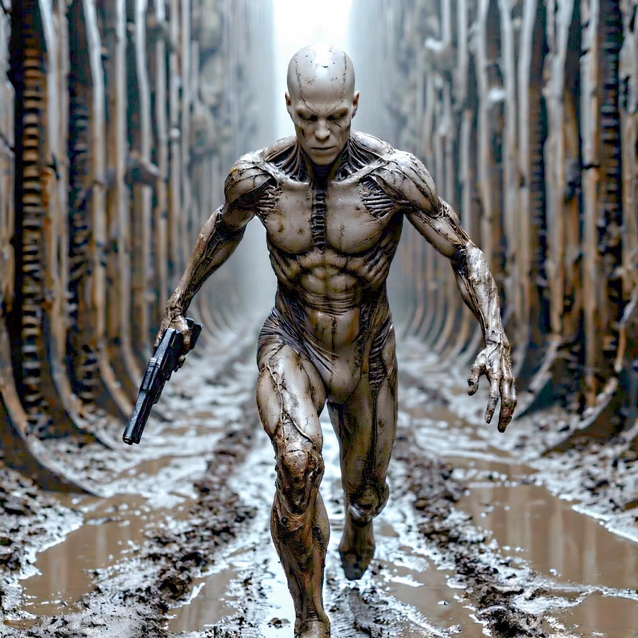 Я забегаю за поворот. Прижимаюсь к стене, к этой наползающей плоти. Я чувствую, как она дрожит, словно реагируя на моё прикосновение. От неё тянет теплом и несёт гнилью, будто она разлагается на ходу.
