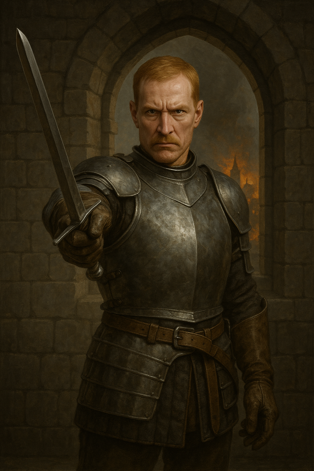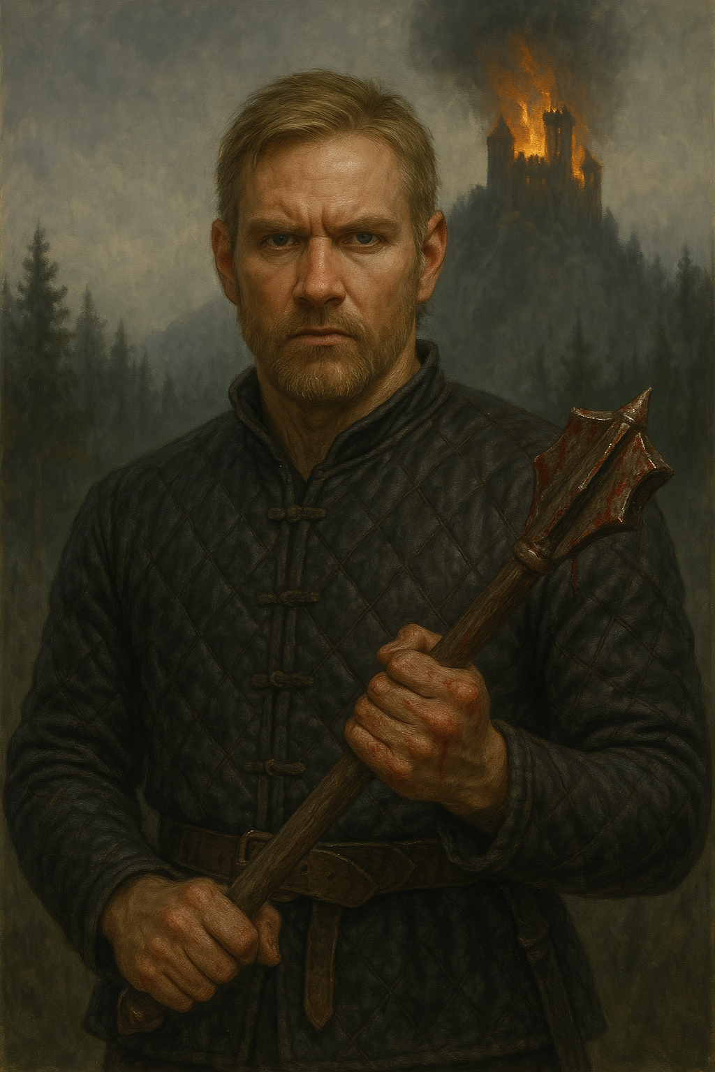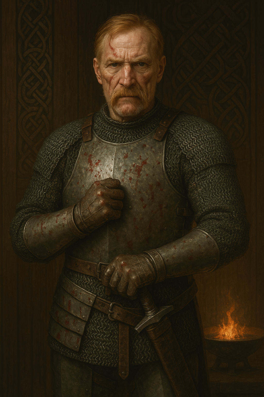 Хра́фнварр Прямой (Ге́раде) – сын Торда Голорукого из младшей побочной ветви дома Скъервир. Ратоводец, много лет занимался делами их дома на юге Дейвоналарды, сражался в распрях Вольных Городов. Вдовец. По слухам жена Гудрун из дома Эвар и сын Бер умерли в моровый год. Проживает в городище Ясеневый Холм на юге Дейвоналарды. На момент начала событий приблизительно 40 лет