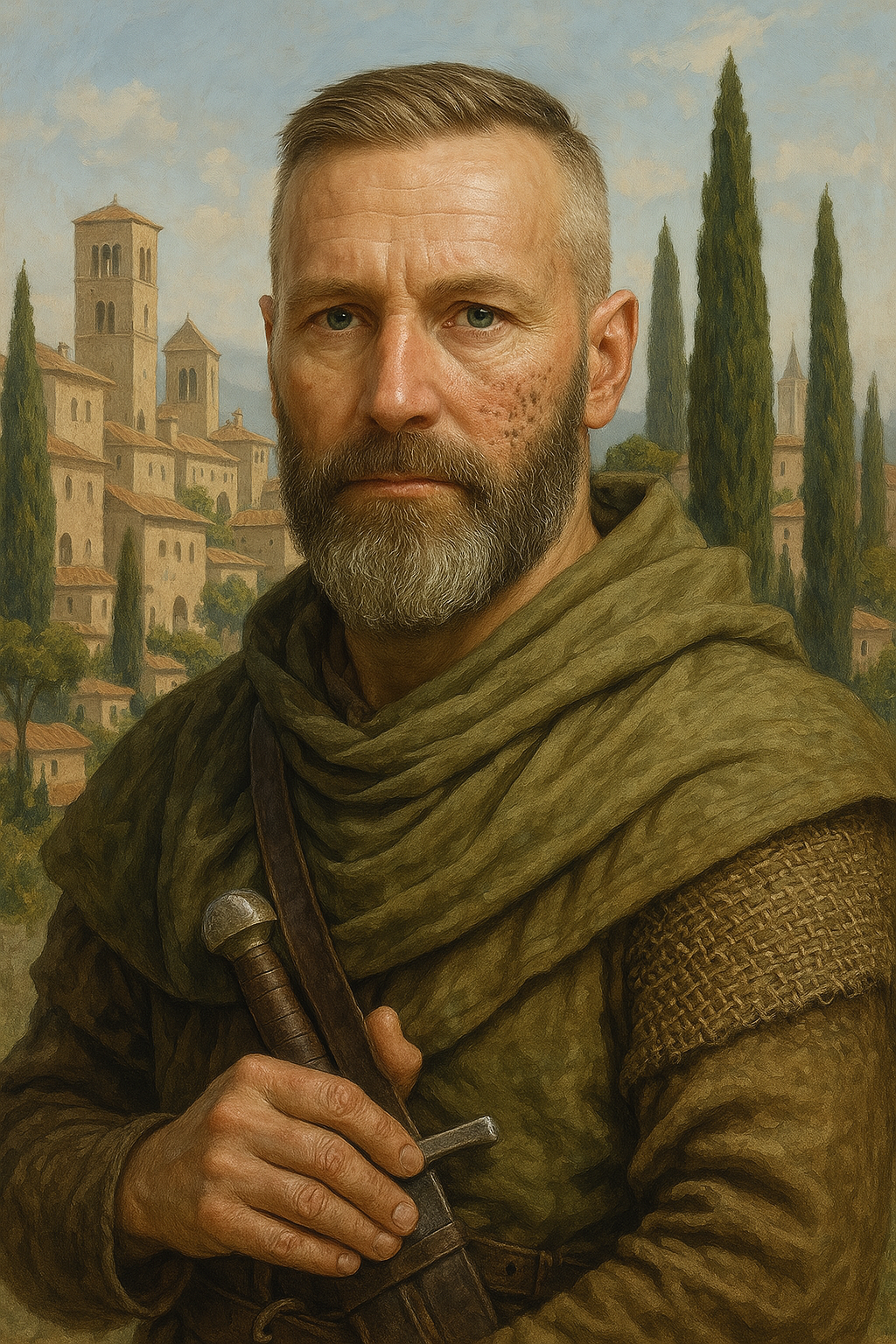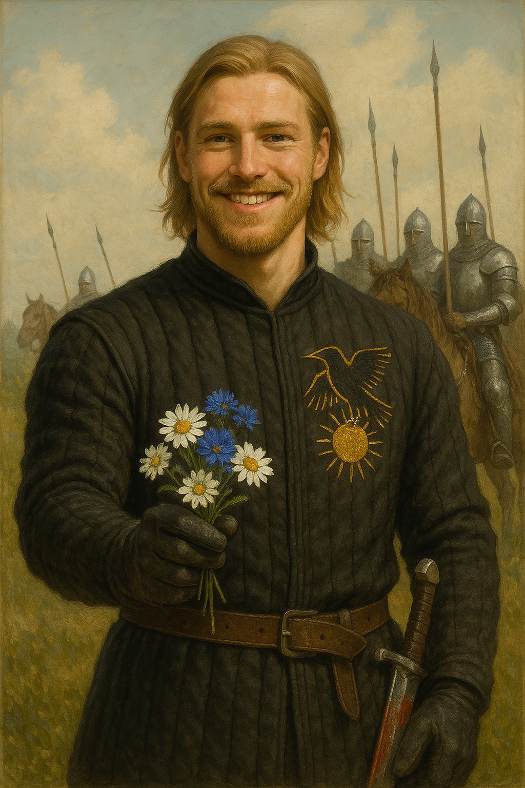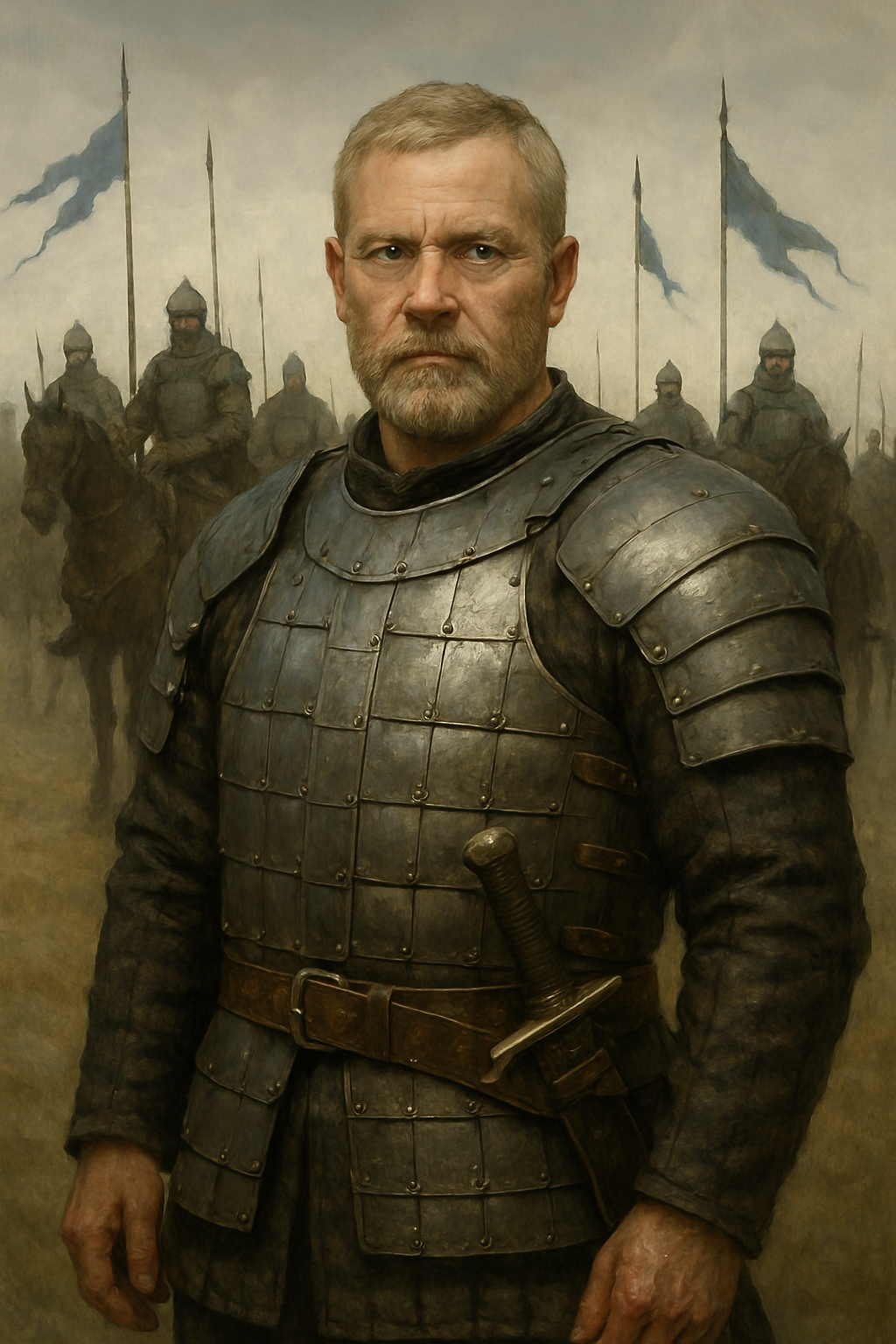 Хра́фнварр Прямой (Ге́раде) – сын Торда Голорукого из младшей побочной ветви дома Скъервир. Ратоводец, много лет занимался делами их дома на юге Дейвоналарды, сражался в распрях Вольных Городов. Вдовец. По слухам жена Гудрун из дома Эвар и сын Бер умерли в моровый год. Проживает в городище Ясеневый Холм на юге Дейвоналарды. На момент начала событий приблизительно 40 лет