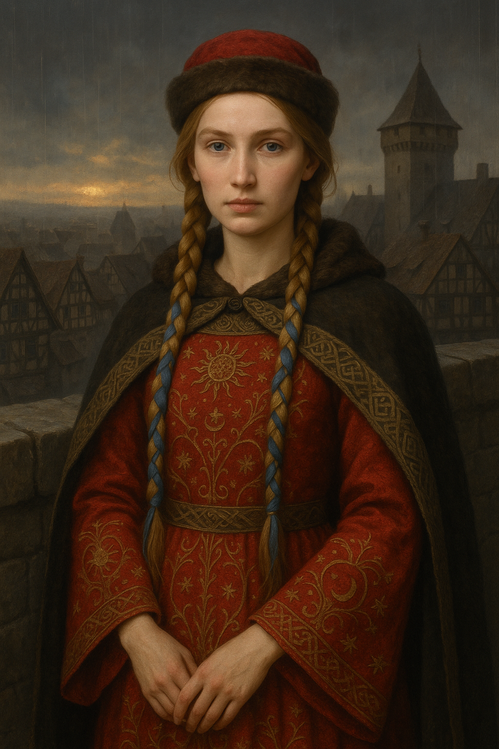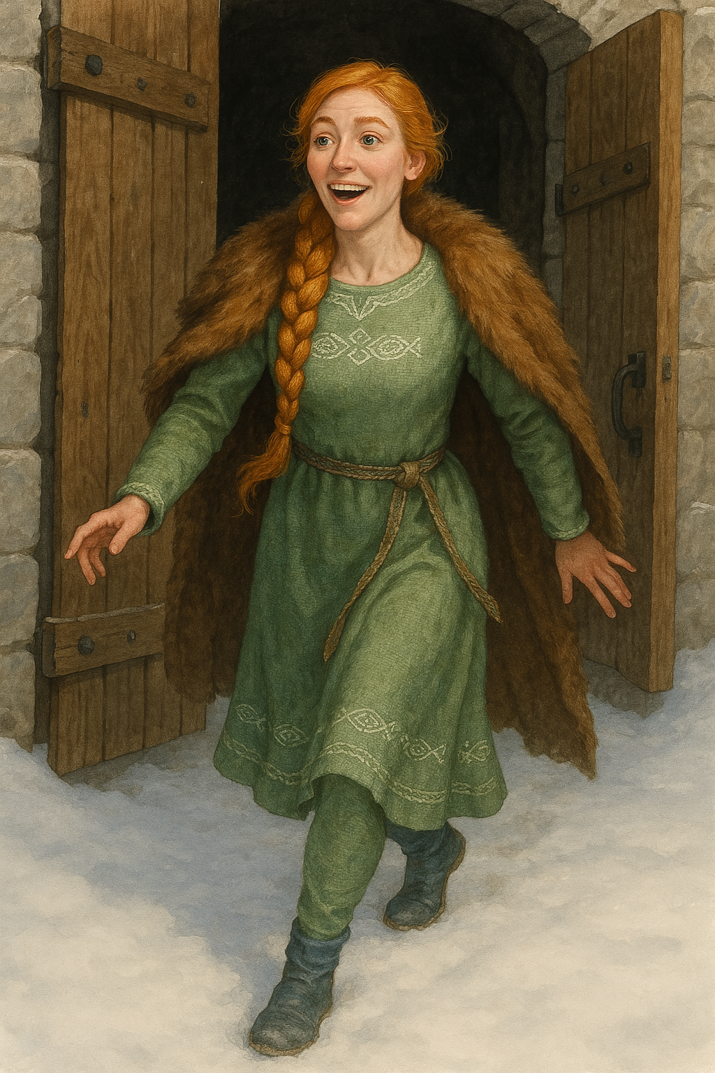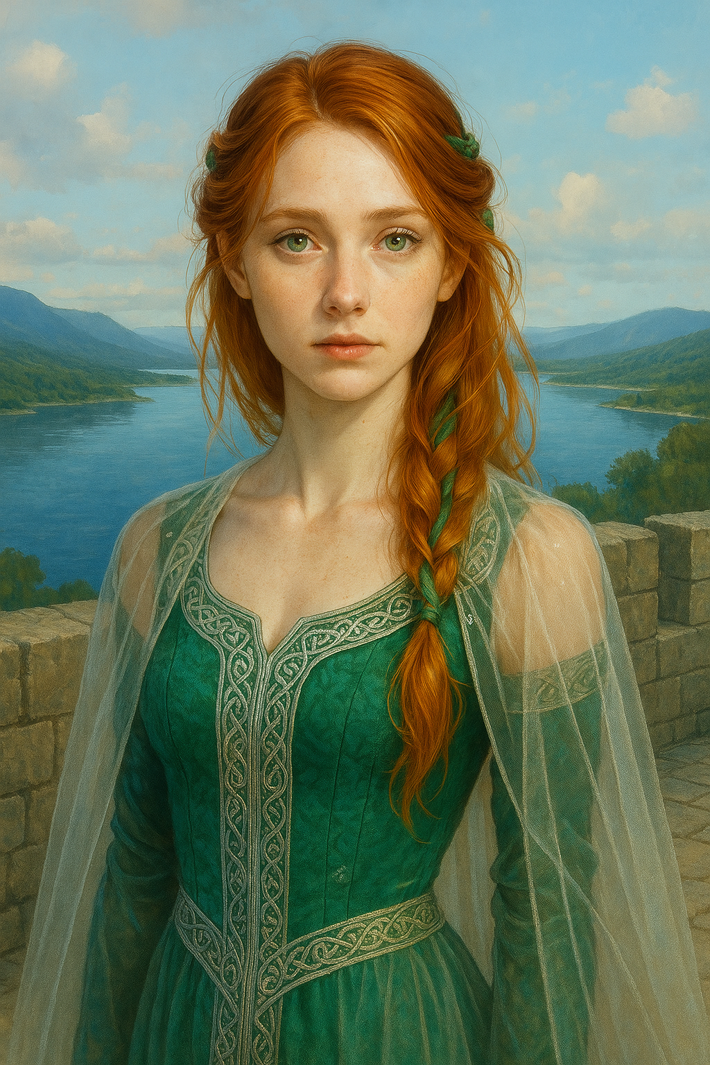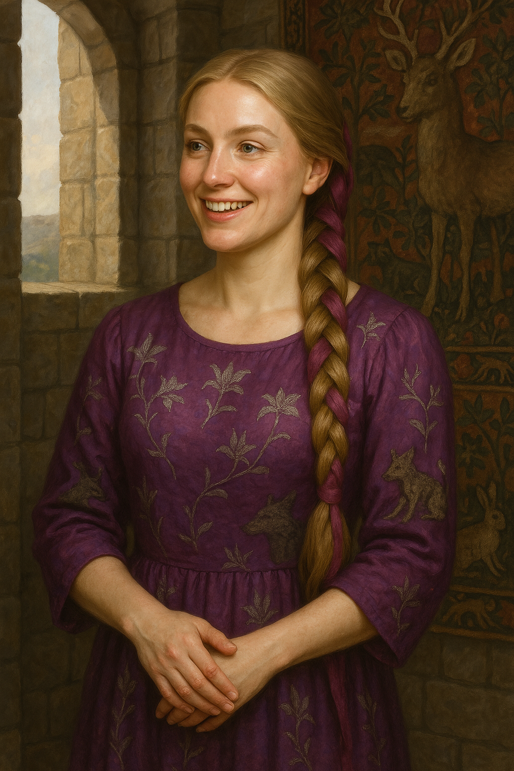 Гéйрхильд – смотрительница швей и прислуги в Высоком Чертоге ёрлов Дейвоналарды. Средняя дочь ратоводца Ллугайда Каменной Тени из Эйрэ, во время Помежных Раздоров была похищена из дома на Чёрной Реке и увезена в ходагейрд как заложница. Прежде была наречена Гвéнхивер, в плену приняла дейвонскую веру и новое имя. Имеет сына Бродди от одного из своих похитителей. На момент начала событий приблизительно 25 лет