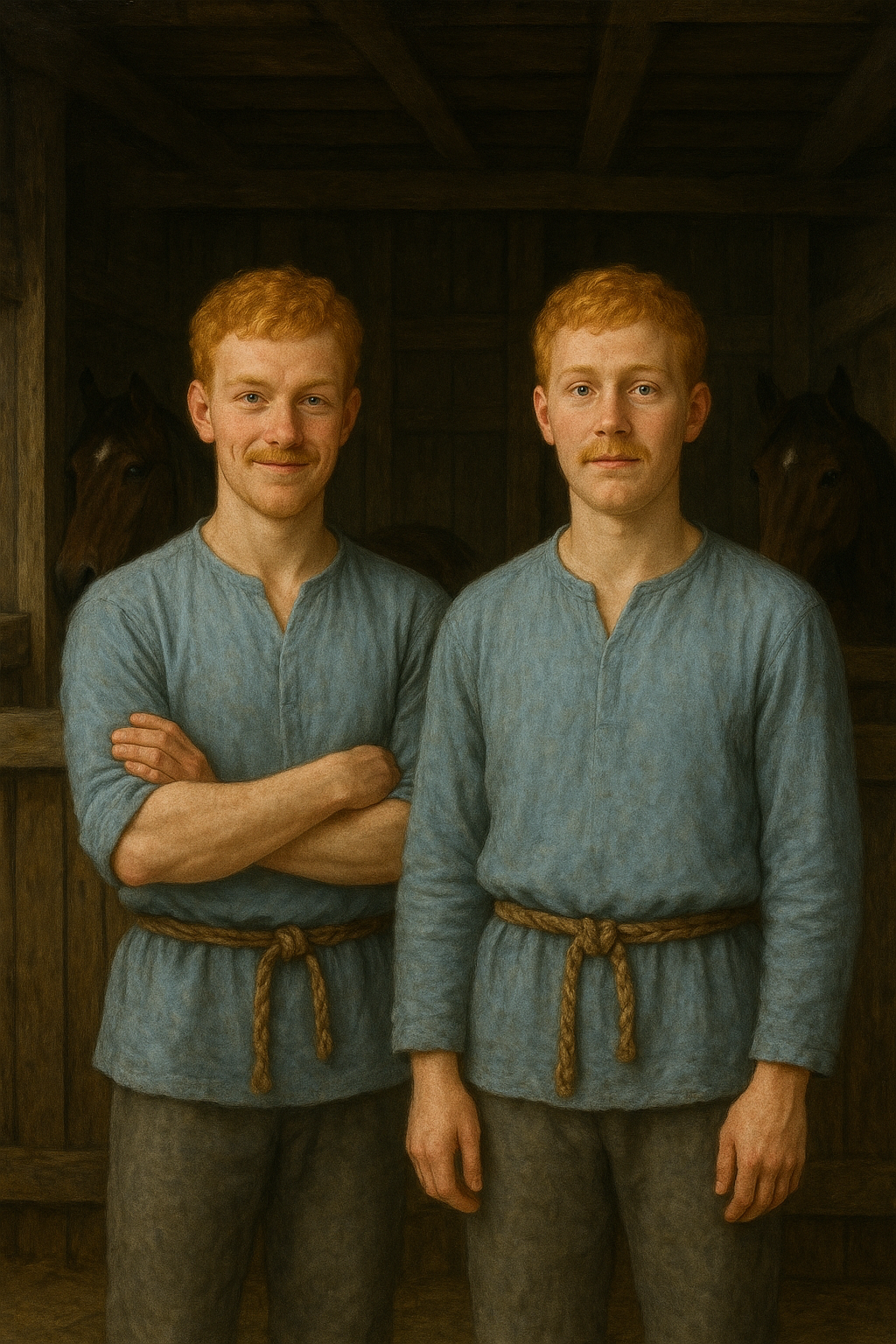 Кóннал Свистун (Фéйдайх), Киа́ран Сьвиня (Мóхин) – братья-близнецы, сыновья Маэла Рваного, конюха из Глеанлох. Детские друзья Гайрэ Железного. На момент начала событий приблизительно 22 года