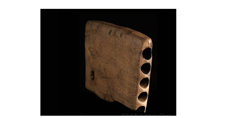 Любопытный инструмент, найденный при раскопках в Коппергейта, Йорк, Великобритания, представляет собой блок-флейту (называемую также панфлейтой или свирелью). Инструмент изготовлен из самшита и напоминает тонкую прямоугольную деревянную пластину, в которой просверлено пять отверстий в вертикальном направлении, следуя древесным волокнам. Этот инструмент датируется десятым веком: