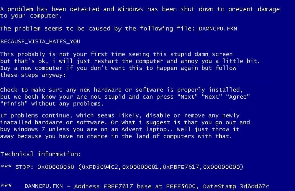 (ПыСы. вот Земной аналог синего экрана смерти.)