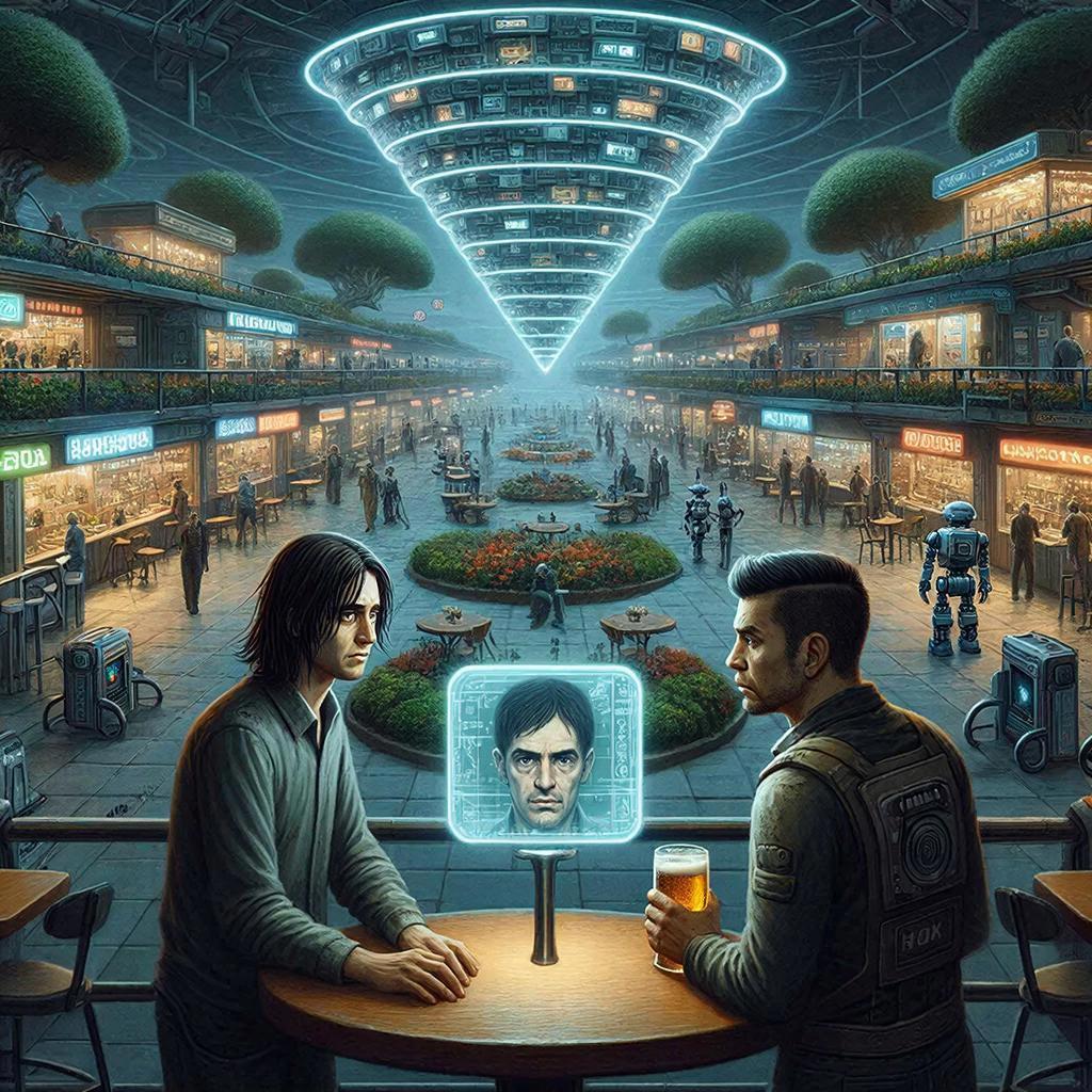 И действительно, даже сейчас в зале можно было насчитать сотни человек, занятых своими делами. Они гремели, галдели, шаркали межу клумб по звенящем металлическому трапу, прятались под сводами гибридной зелени. Беспокойные люди проводили время за столиками, перебирая сплетни станции и делясь новостями галактической сети. Азартные играли в карты или домино, метая пальцами по сенсорной поверхности стола. Ленивые пялились на экраны интерактивных стен или на пляшущие голограммы в пространстве зала. Практичные теснились у барной стойки.