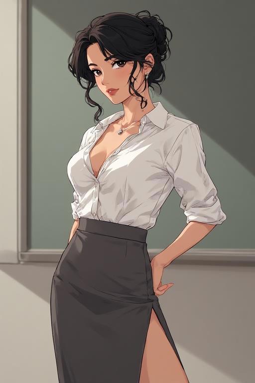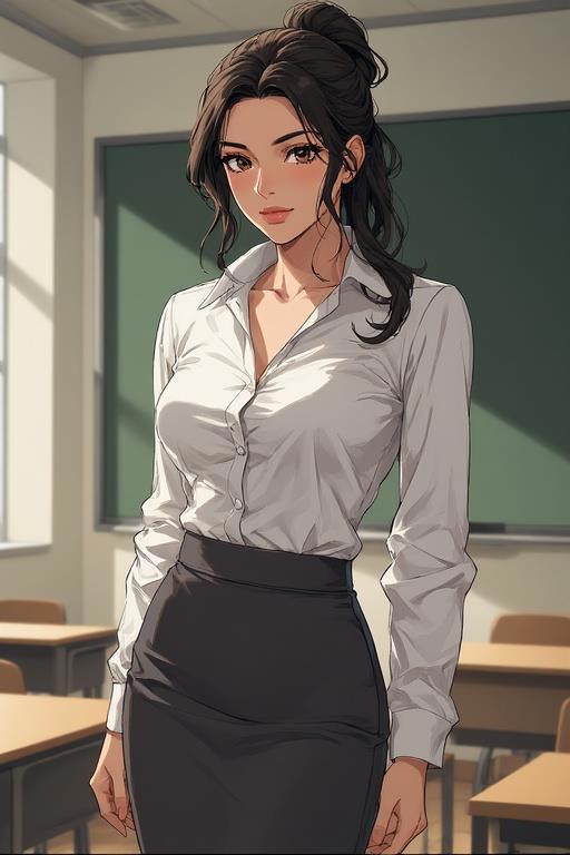 И вид ее сводил меня с ума. Если в общежитии она была скромной мышкой, то здесь, в своей стихии, она была… богиней познания, облеченной в плоть. Строгий костюм «училки» был на ней орудием пытки для моего демонического естества. Безукоризненно белая блузка, сквозь которую угадывался контур изящного кружевного бюстгальтера. Обтягивающая юбка карандаш, до боли соблазнительно обрисовывающая линию бедер и то место, где ткань мягко натягивалась над округлостями. Иногда, когда она поворачивалась или наклонялась над столом, я мог разглядеть даже слабый, манящий след от резинки трусиков. Это сводило с ума.