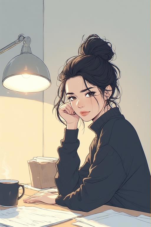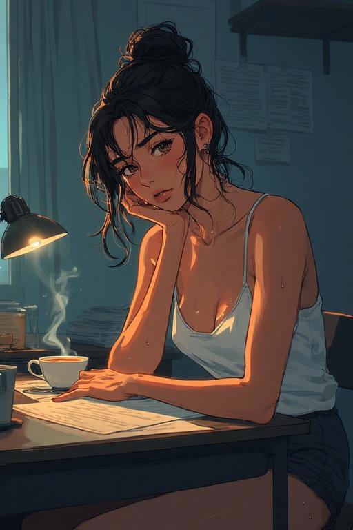 Она встала, повернулась ко мне спиной — изящный изгиб позвоночника под тонкой тканью — и потянулась за застежкой на затылке. Ее волосы, черные как смоль, рассыпались по плечам волной, от которой воздух затрепетал. Затем она ухватила за край водолазки и потянула ее вверх. Это было медленное, почти ритуальное действо. Ткань скользила вверх, обнажая сначала узкую талию, затем спину, закрытую простым белым хлопковым топом, и наконец — она сняла водолазку и отбросила ее на спинку стула.