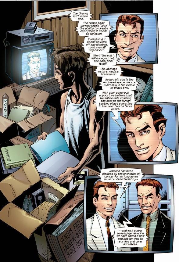 Изначально созданный с благородной целью, проект В.Е.Н.О.М. был задуман как средство для лечения различных болезней, включая рак. Ричард Паркер и Эдвард Брок старший стремились создать костюм, состоящий из биоорганического материала, который мог бы взаимодействовать с человеческим организмом, укрепляя иммунную систему и уничтожая раковые клетки. Этот костюм, по их замыслу, должен был стать революционным прорывом в медицине.