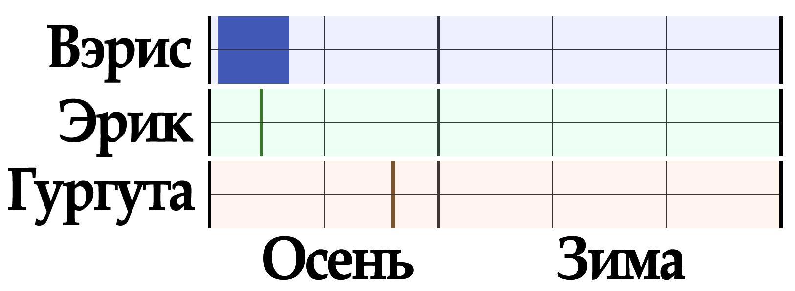 Некромантесса держала курс на запад. По расчётам до Дориндорфа было около семисот пятидесяти пяти часов лету. Разумеется, провести всё это время в воздухе она не могла. Значит, до гор она доберётся лишь месяца через два. Через изнанку она проделала бы этот путь за миг! Но из-за Окса чёрная дорога для Вэрис была закрыта. А с другой стороны, что такое какие-то два месяца для бессмертной хуфу? Лишь миг. Заодно отдохнёт и насладится природой Юга. А потом останется разыскать Гургуту. С этим было сложнее. К этому времени вождь гномов наверняка уже достигнет Годсдорфа. А туда лететь через всю Вергилию. Впрочем, Гургута мог провести в Годсдорфе хоть всю жизнь, а пути к Краю мира он всё равно не найдёт. Хотя там действительно располагался один из немногих проходов. Но простому смертному никогда не открыть этот путь.