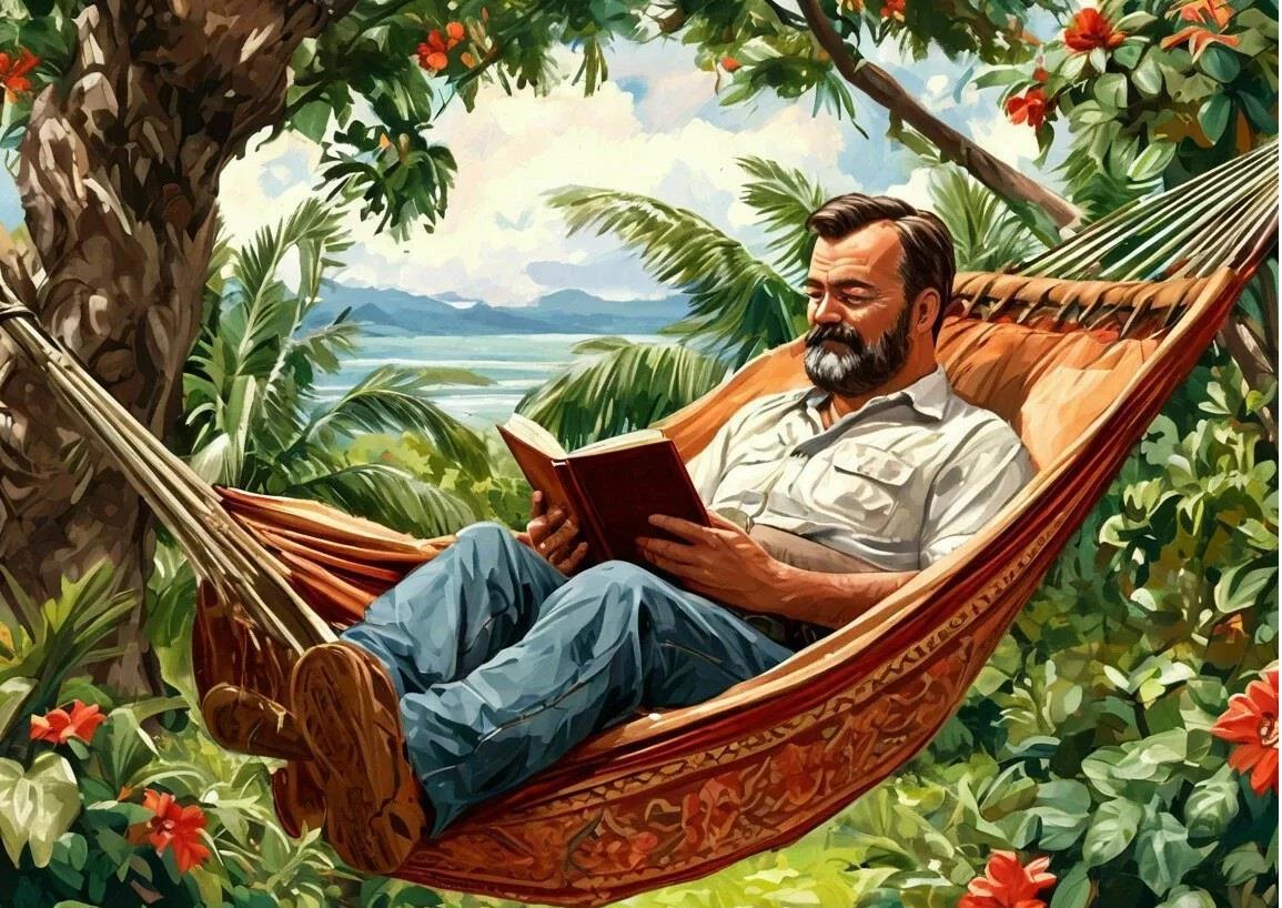 Проснулся Хемингуэй дома. Проснулся поздно, когда солнце подваливало к полудню. Выпил свой хайбол, умял сэндвич с беконом и сыром. И теперь медленно качался в гамаке в тенёчке сада, лелея на животе блокнот и остро отточенный карандаш.