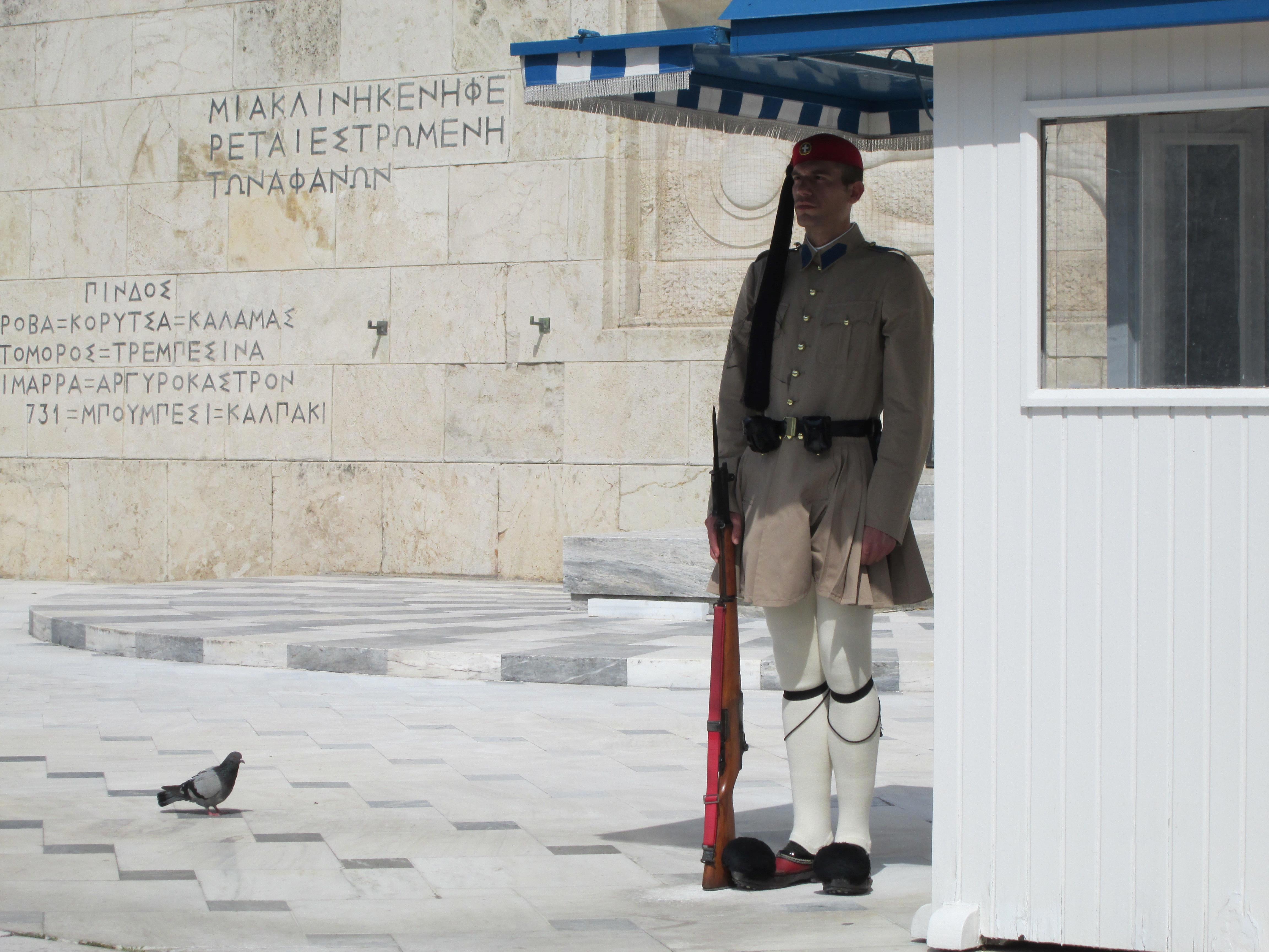 По пути нам попалось несколько будок с замершими в них эвзонами.