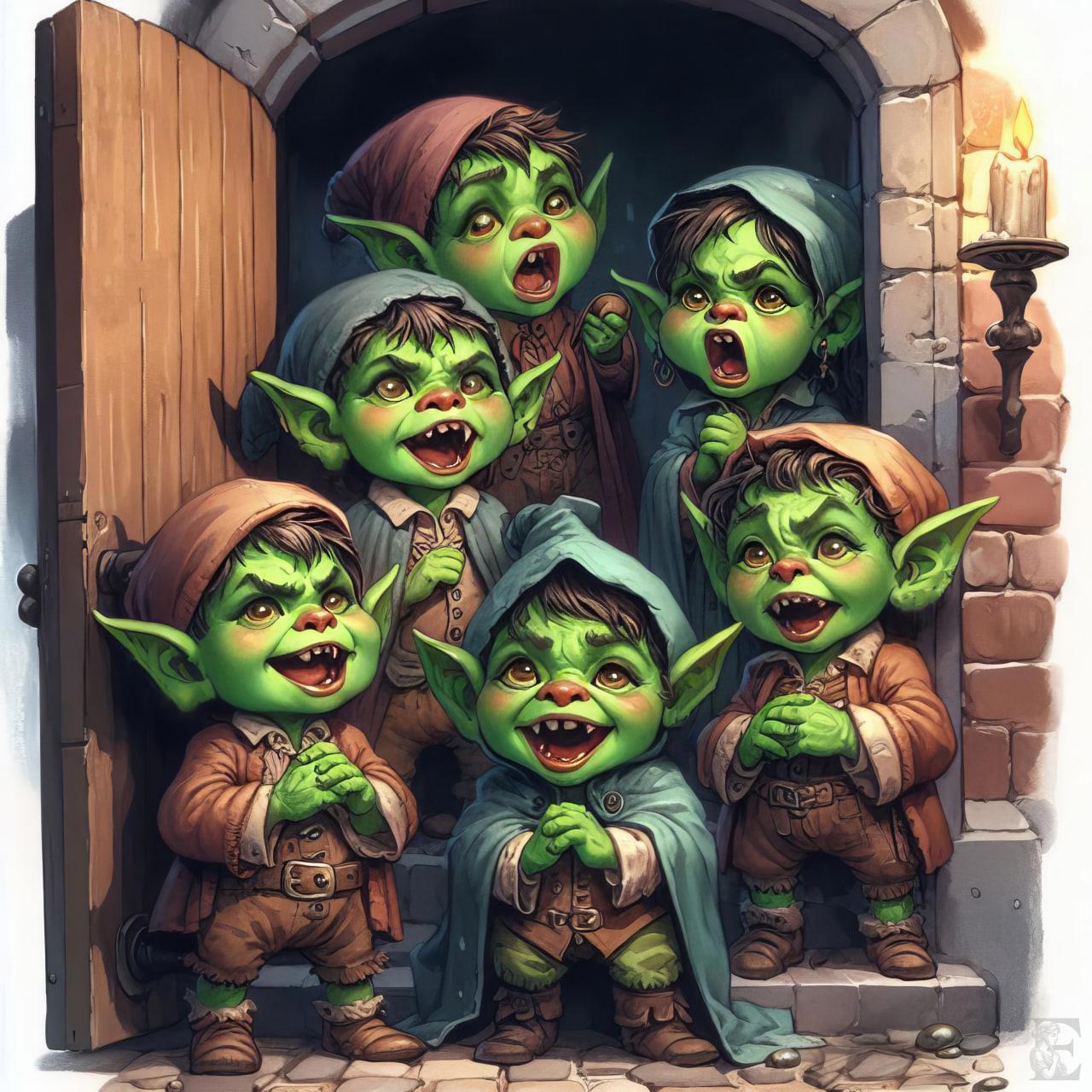 Они делали самые умильные мордашки, какие только могут маленькие гоблинята. Но получали все равно в основном объедки. Колядующим гоблинам принято давать только съестное, потому что если дать хоть одну монетку, они запомнят, что тут есть деньги, и в другой день явятся снова.