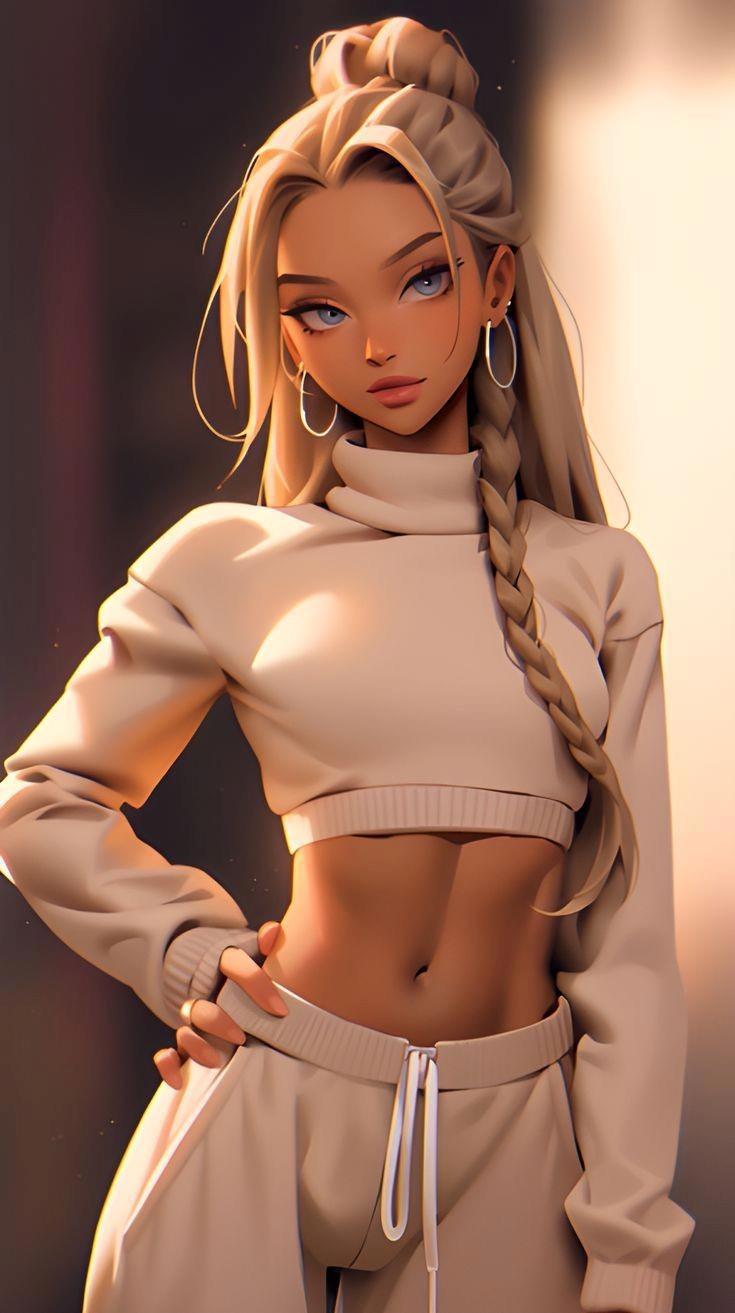 Даже в её позе была скрыта история: она сидела прямо, с лёгким наклоном головы, одной рукой поддерживая телефон, а другой небрежно поправляя прядь волос, упавшую на лицо. Её движения были плавными и естественными, но в них ощущалась скрытая уверенность, словно она знала свою значимость. Время от времени она проводила пальцем по экрану, просматривая ленту, и её губы чуть дрогнули в лёгкой, почти незаметной усмешке, которая могла быть адресована только ей самой.
