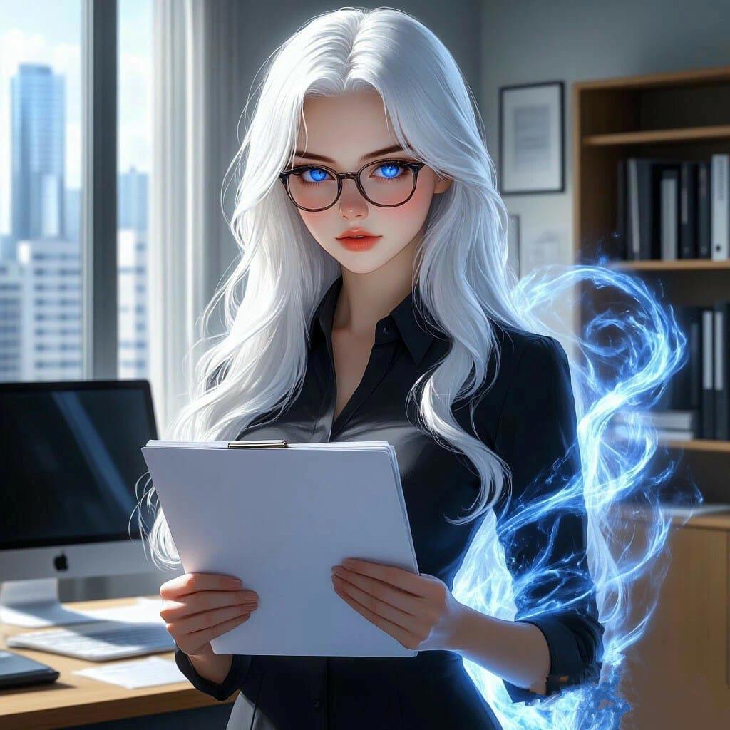 В минималистичном холле нас встретила миловидная девица, которой я не дал бы больше пятнадцати лет. С белыми волосами и белыми бровями. И в строгом голубом костюме. Её серьёзные карие глаза просканировали нас с ног до головы, после чего она поинтересовалась: