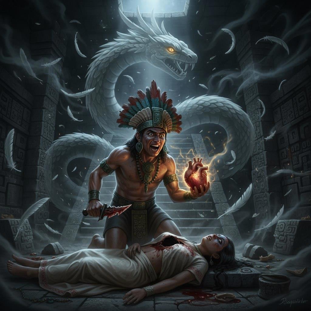 «Прими это, Владыка Ветров, — благоговейный шёпот служителя нёсся вдоль стен храма. Сжимая в руках обсидиановый скипетр-ицтли, мужчина просил. — Прими жертву и благослови нас, твоих детей. Дай дождей и урожая».