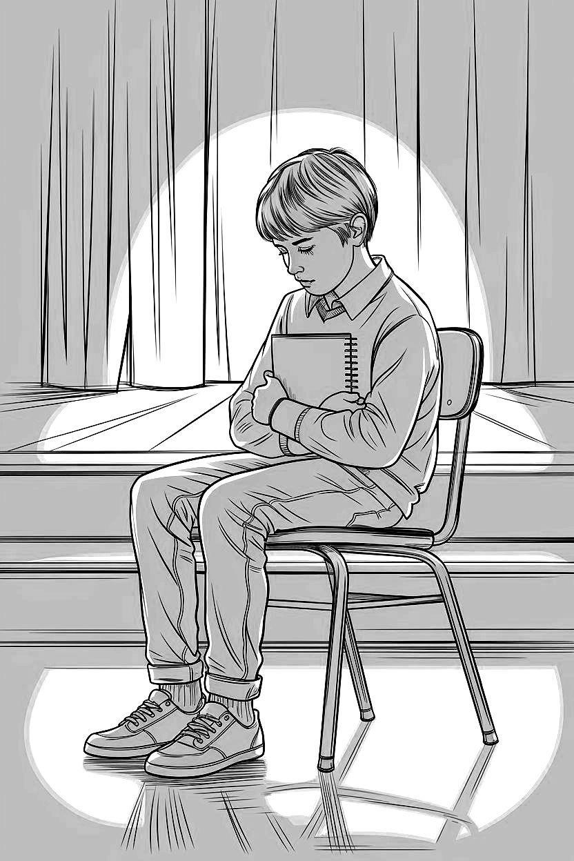 На сцене актового зала (столовой) стоял стул и на нём дисциплинировано сидел семиклассник Антон Архипов. В его руках была коленкоровая тетрадь, которую ему уже вернули. В правой руке у него был карандаш. Он молча смотрел в зал прямо перед собой. Его сюда привели, посадили на этот стул, велели молчать и просто отвечать на вопросы учителей, коль таковые ему поступят. Антон был малость помят в прошедшей Великой битве Света и Тьмы, но держался в общем-то спокойно.